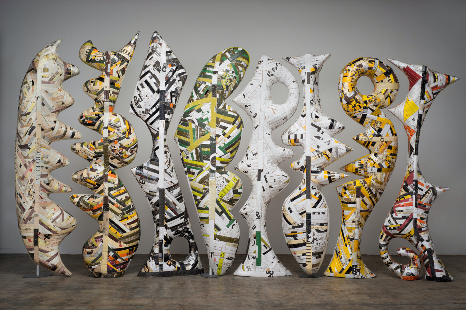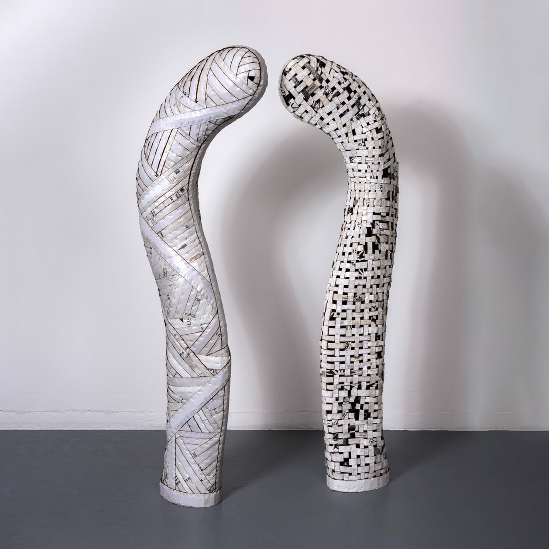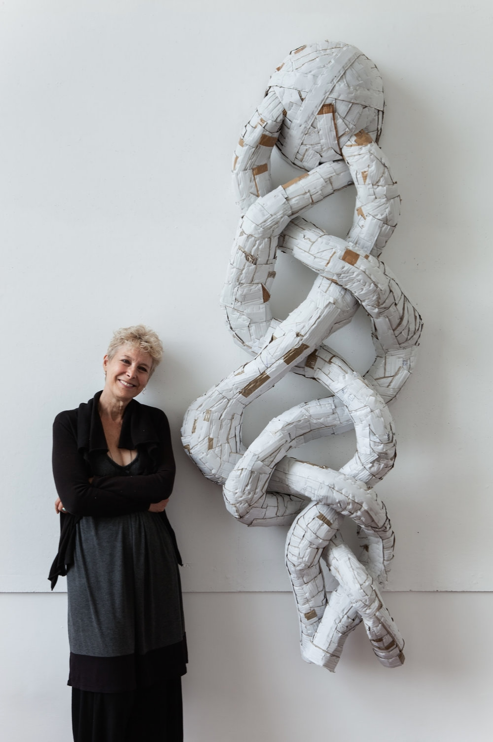 In 1991, Ann transitioned to working with cardboard as her chosen medium. The versatility of cardboard allowed Ann to construct monumental yet lightweight forms, liberating her from the cumbersome processes associated with clay. Inspired by the cardboard furniture crafted by Frank Gehry, their abstract sculptures serve as metaphors for the diverse range of human experiences that define our existence.