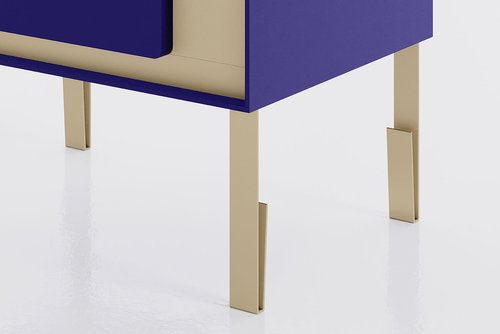 As shown - Blue lacquer pulls and surround. Polished brass cabinet front / rear and legs