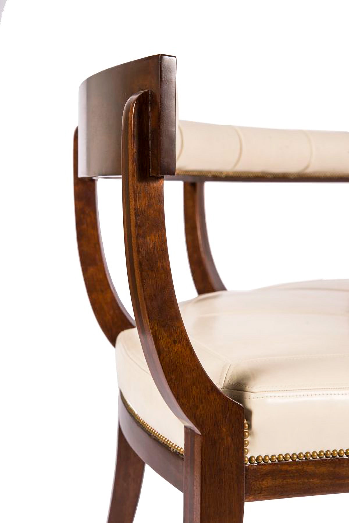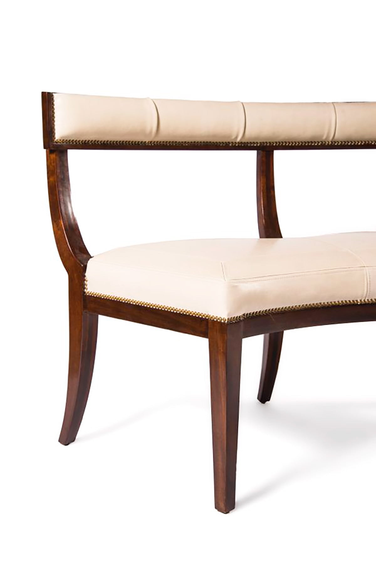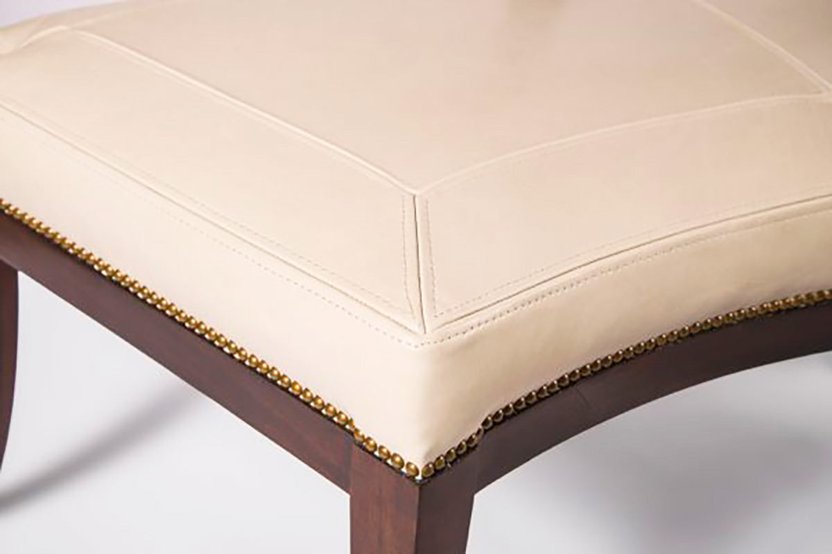 Satin Mahogany and Red Oak with saddle miter stitch and nail head trim.