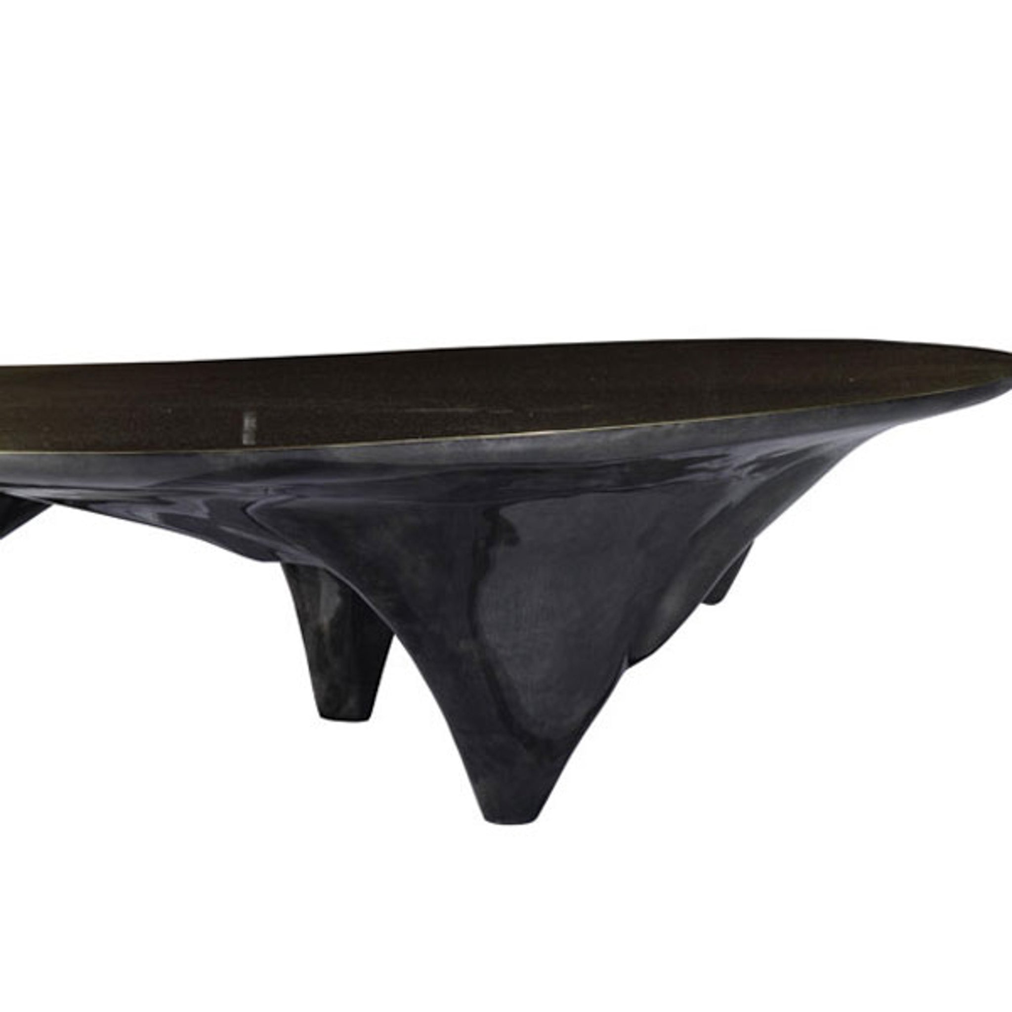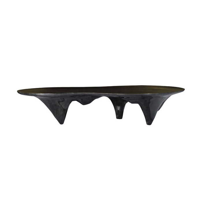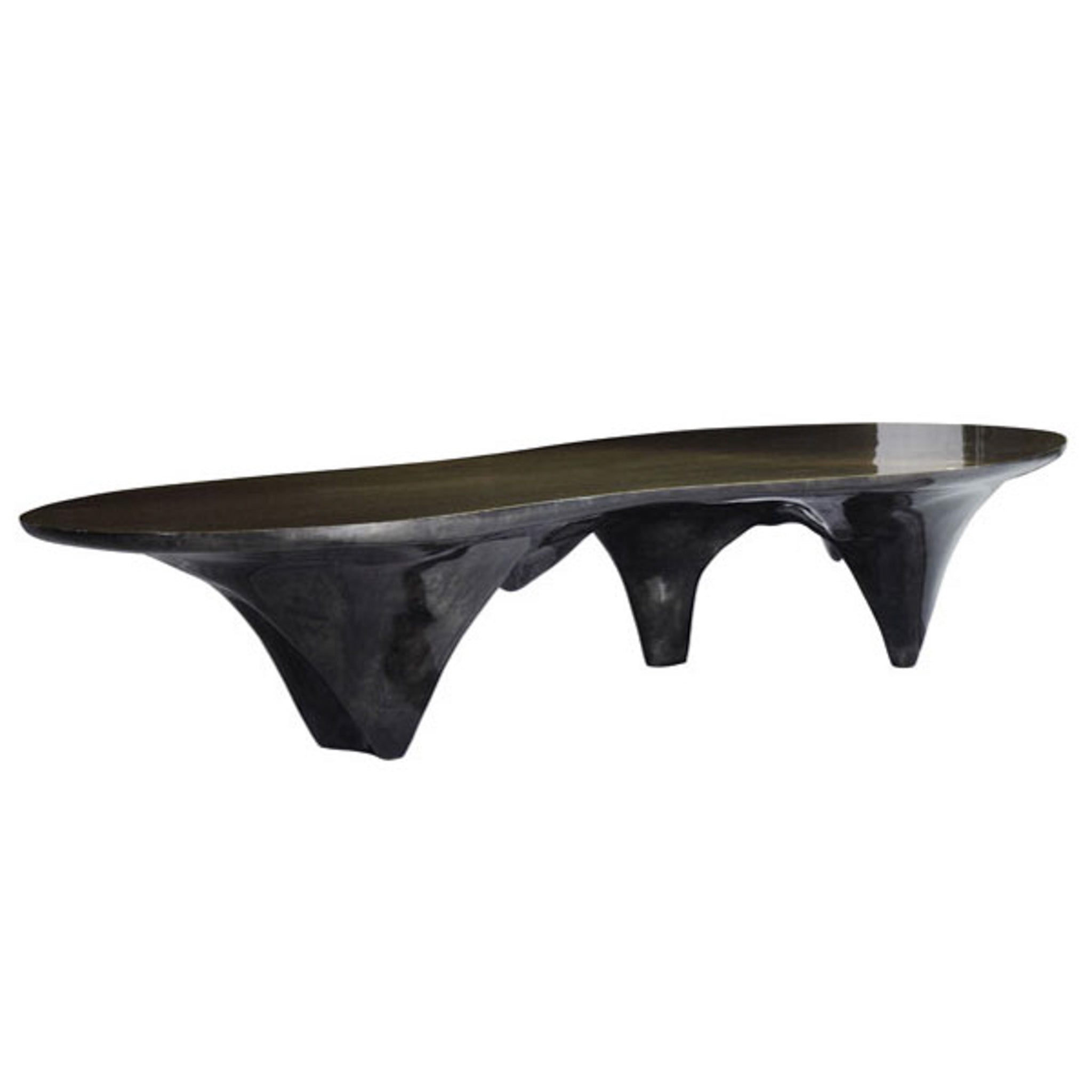 The table top is finished in a contrasting brush polished bronze top