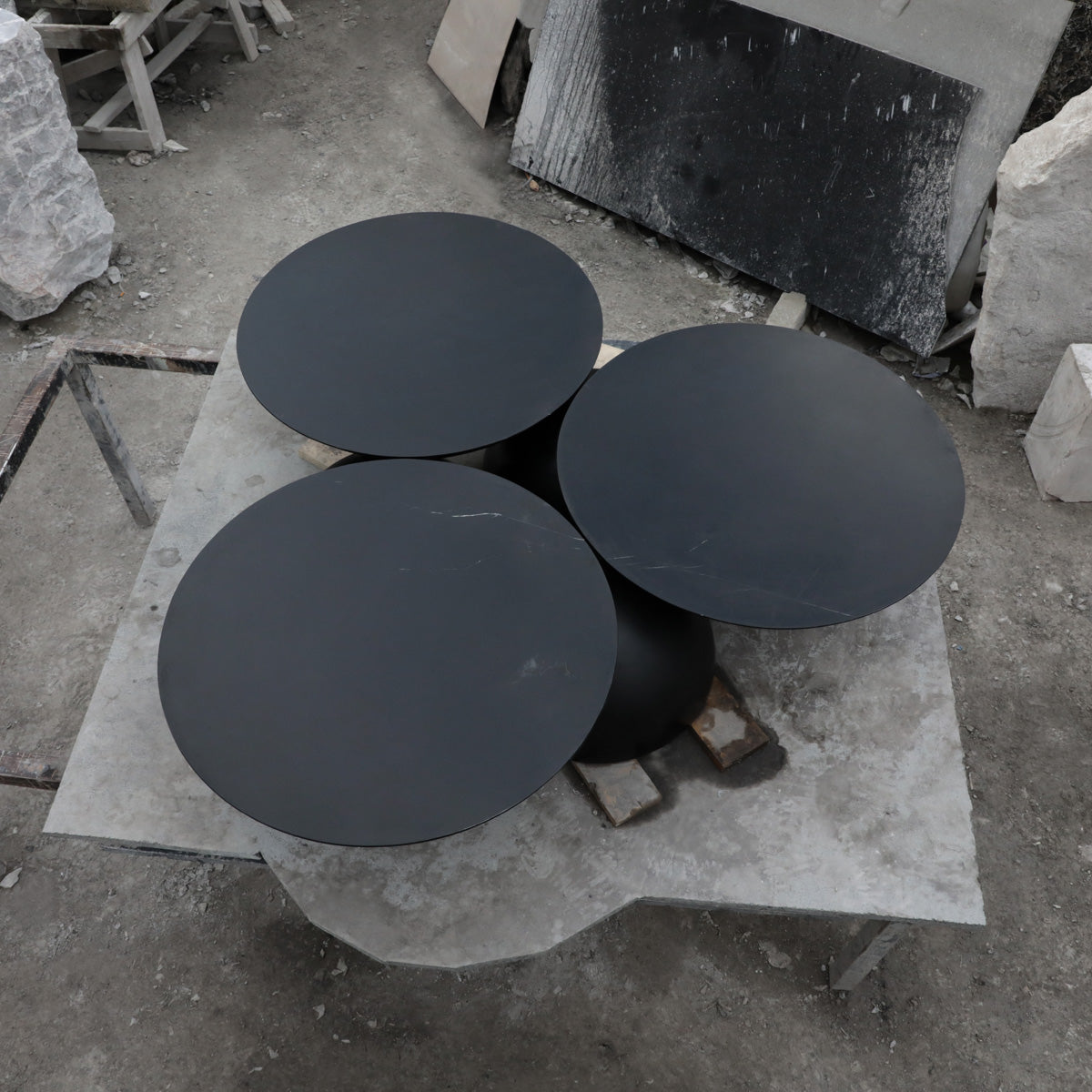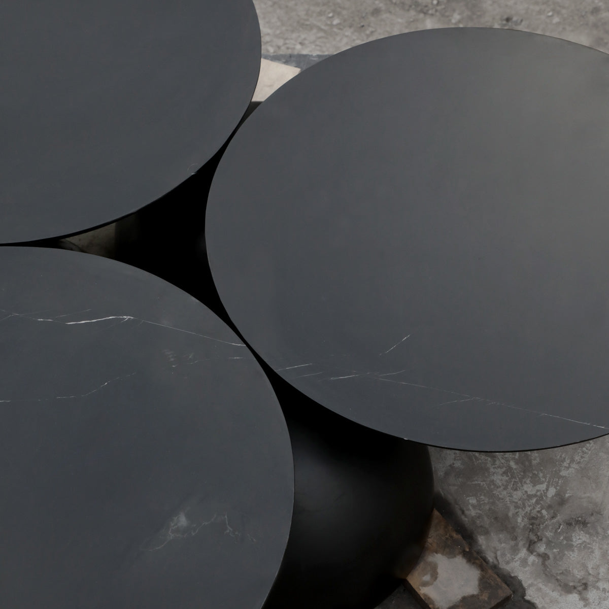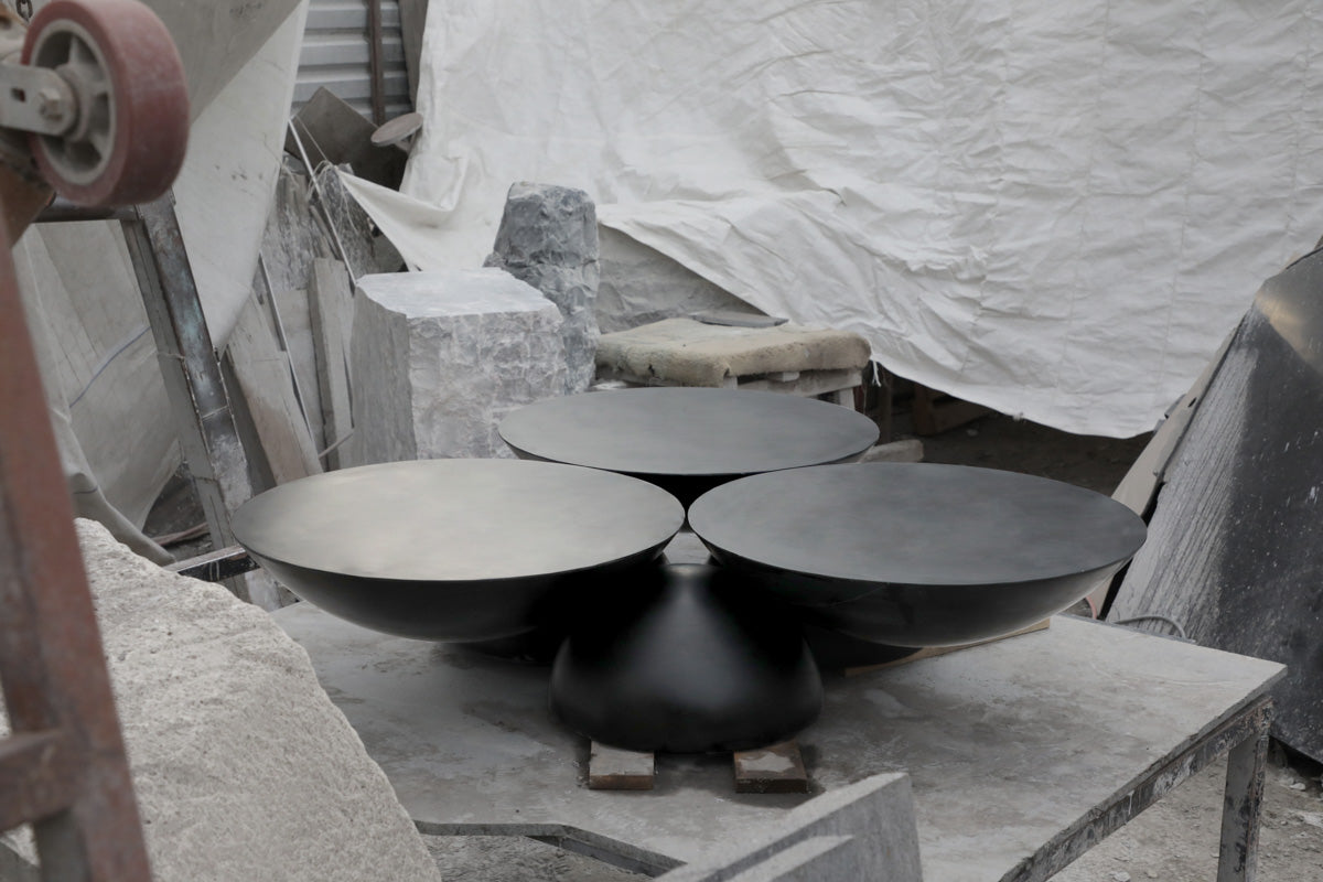 The coffee table of EWE Studio is made out six half spheres, three smaller half and three large half spheres, that are assembled together