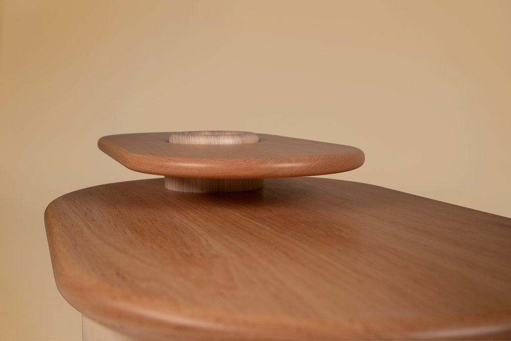 Domo Twin Capsule is a multi-level, large, oval coffee table, designed to be versatile in a variety of living spaces. With the Domo signature bowl positioned centrally on the upper surface, connecting one of the three large volume legs to the main table top. Each piece in the collection has been designed to work independently and in conjunction with other elements. The Domo Twin Capsule can be paired with Domo Capsule.