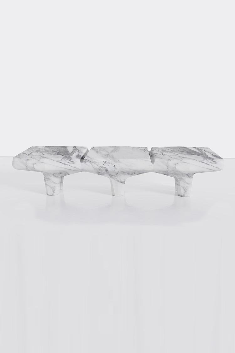 The massive marble heft of the druidstone coffee table is juxtaposed against its refined form: quietly assertive in any setting