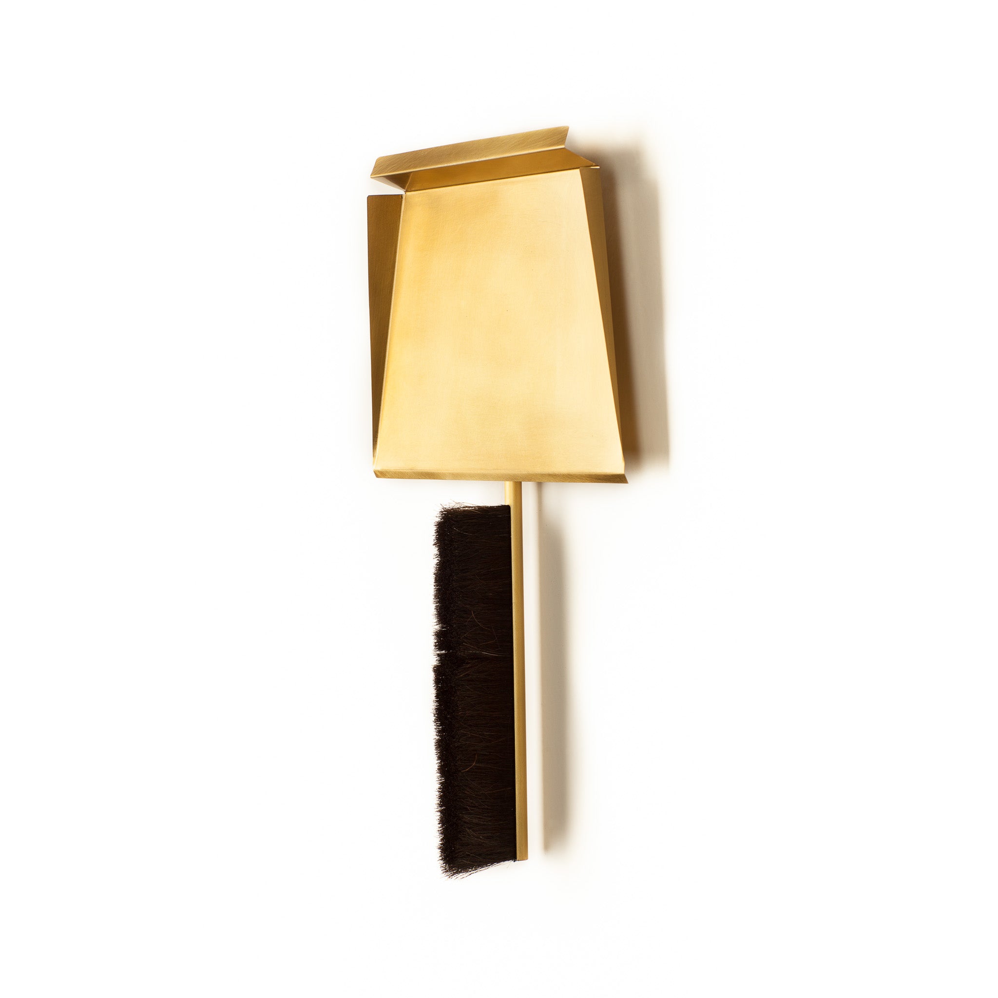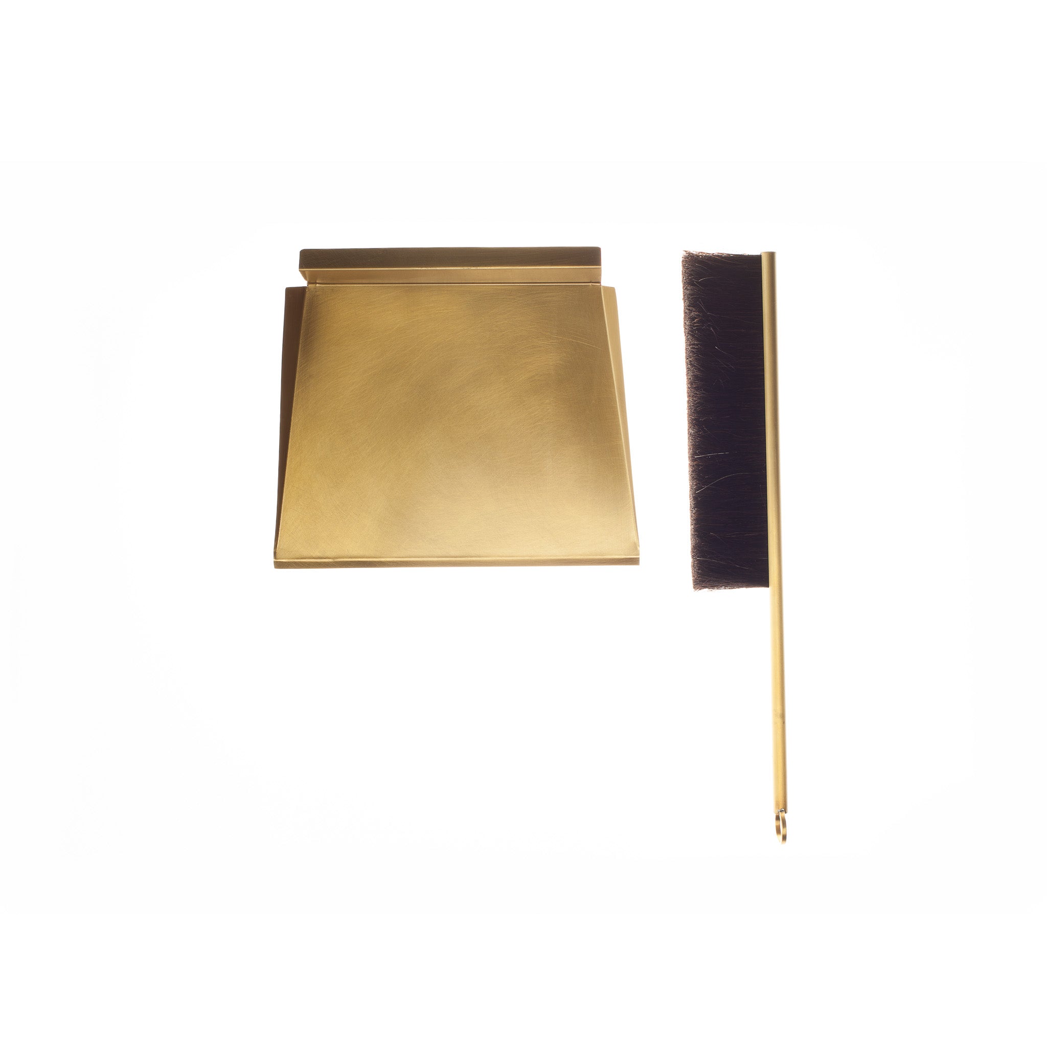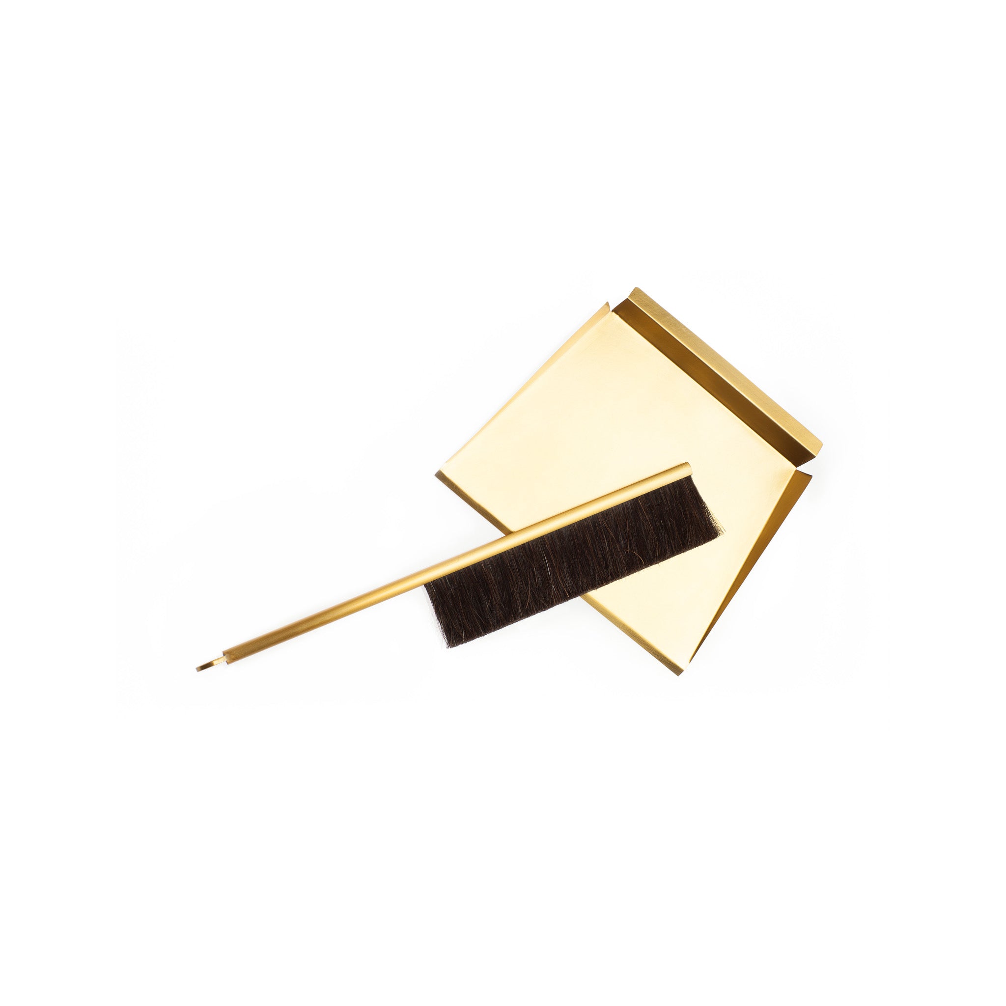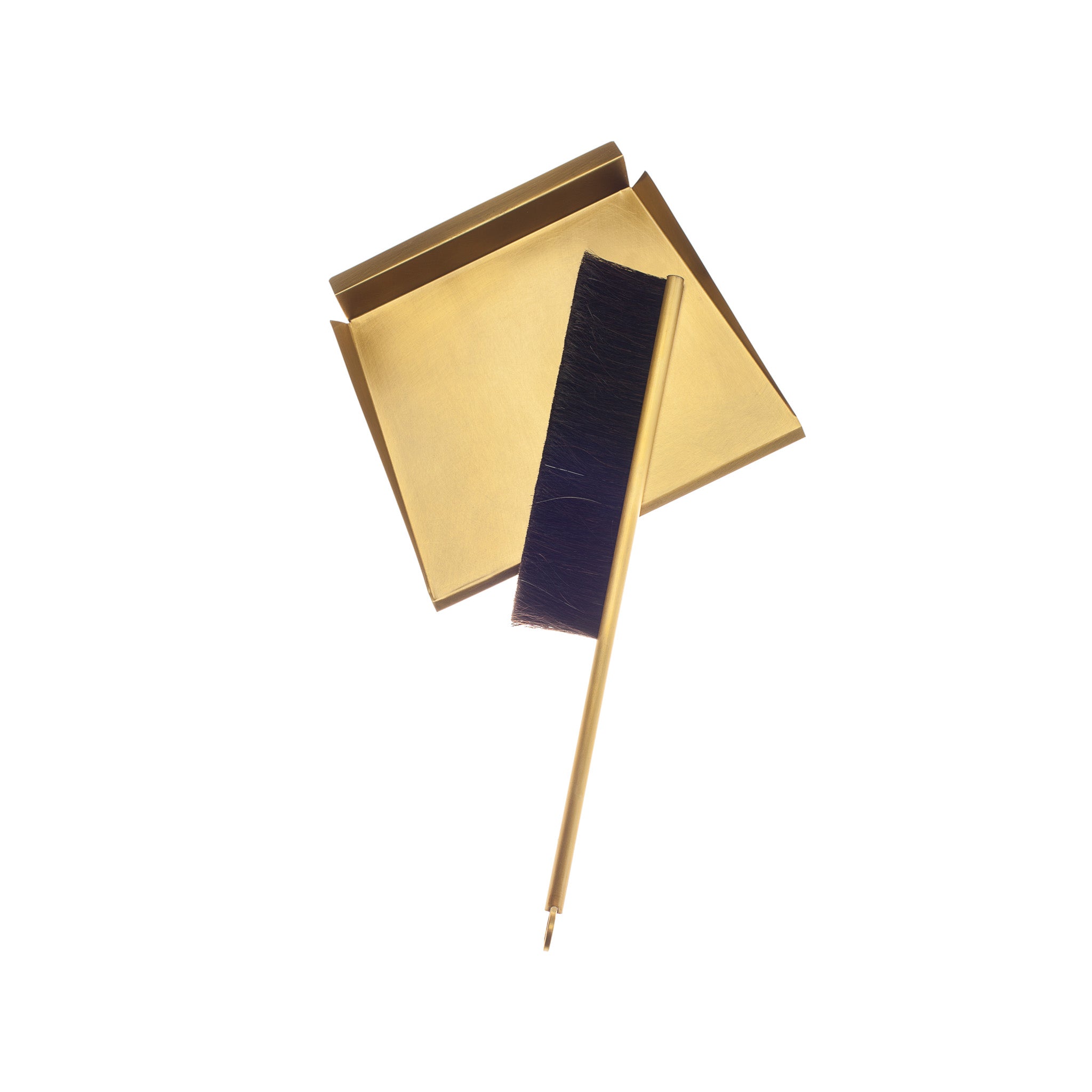 Made of brass and horsehair, the set comes with a magnetic peg that allows for the pan and brush to be proudly be displayed and offers convenience for those moments of need