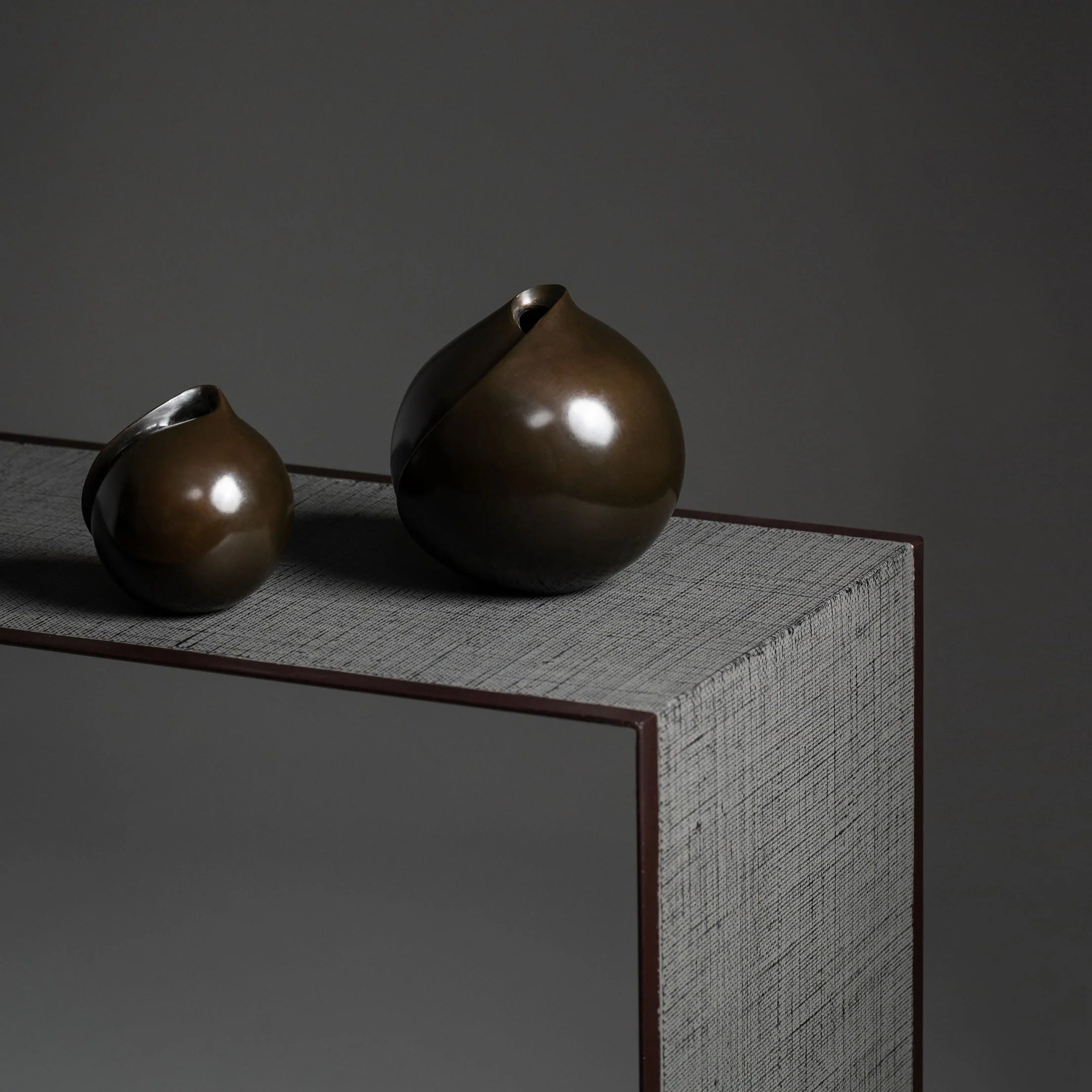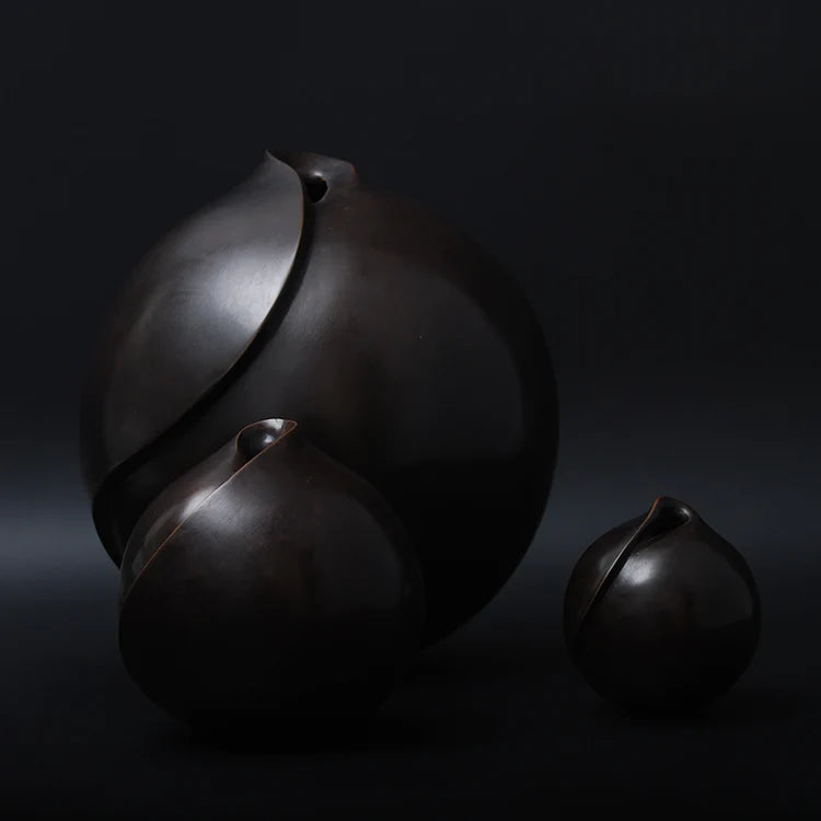 Swept and round, cast in hard metal but with the soft and delicate form of a fresh bud
