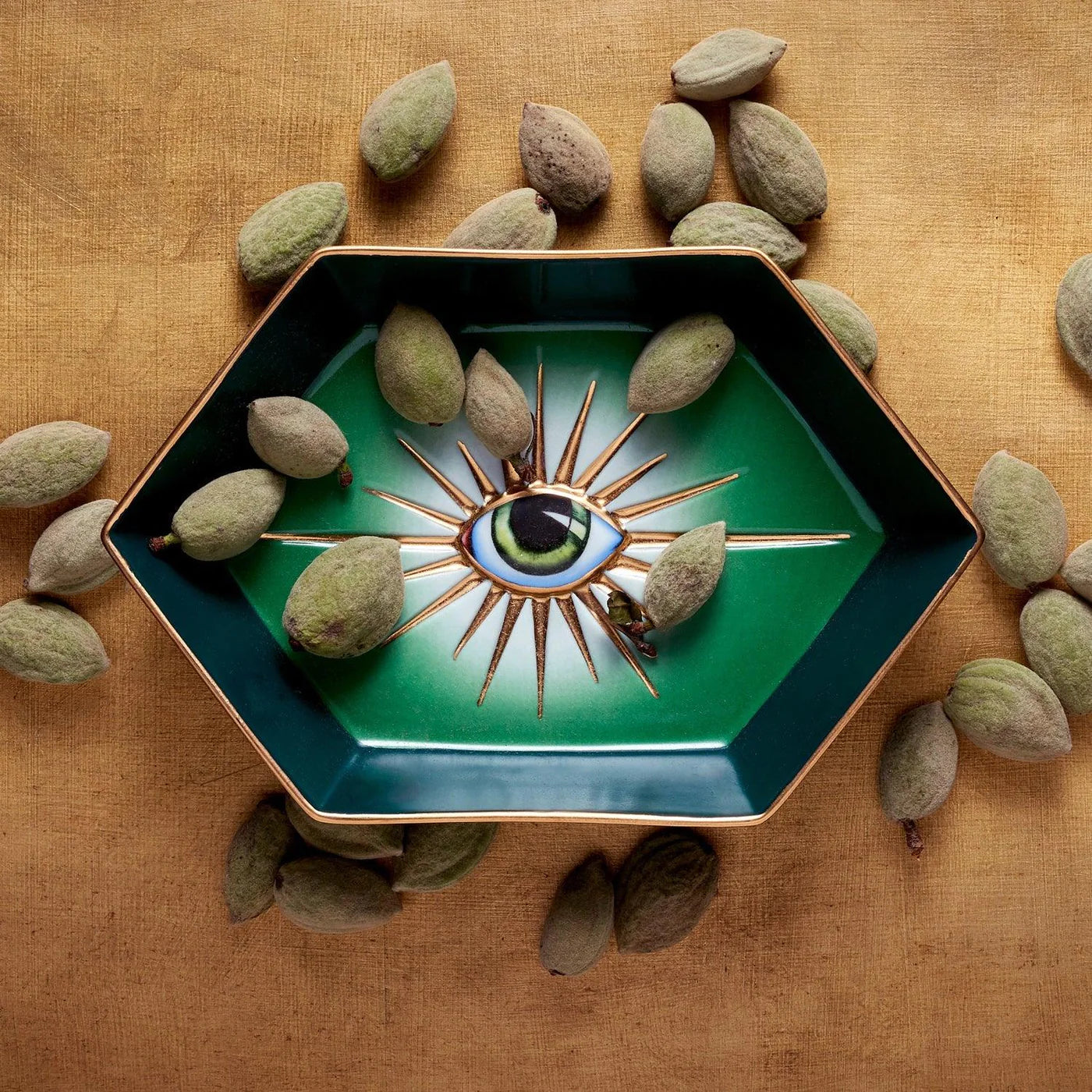 Whimsical and surreal, this catchall is handcrafted from porcelain with 24-karat gold plating