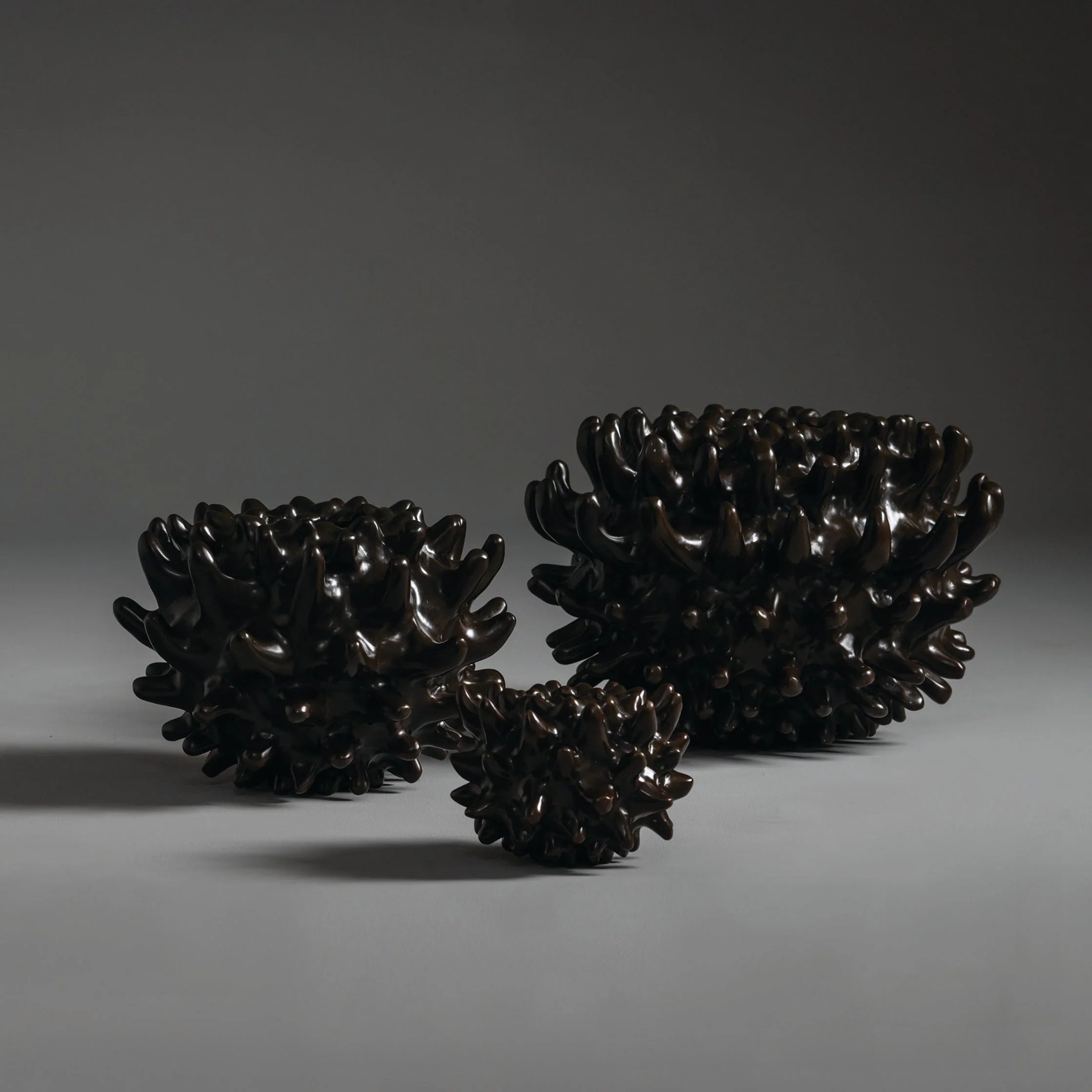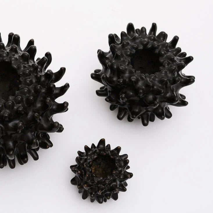 Spikey and spiney, but also subtly rounded and uplifting; not a literal translation of the uni sea urchin’s form.