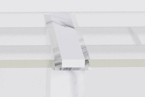 As shown - 1-5/8” thick, quartz crown glass top - Bianco carrara marble bases with polished nickel supports