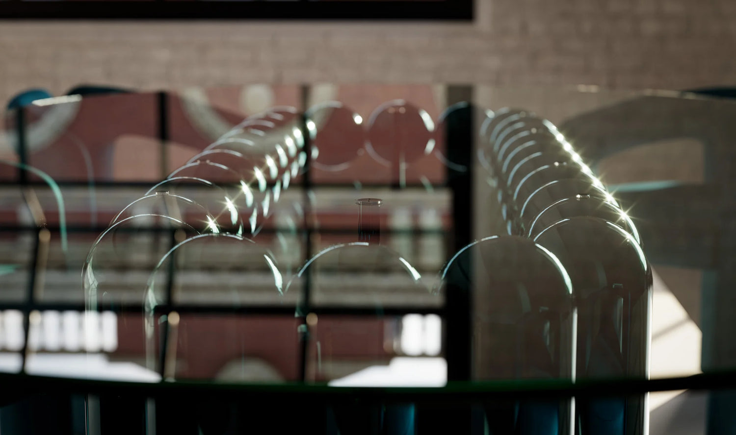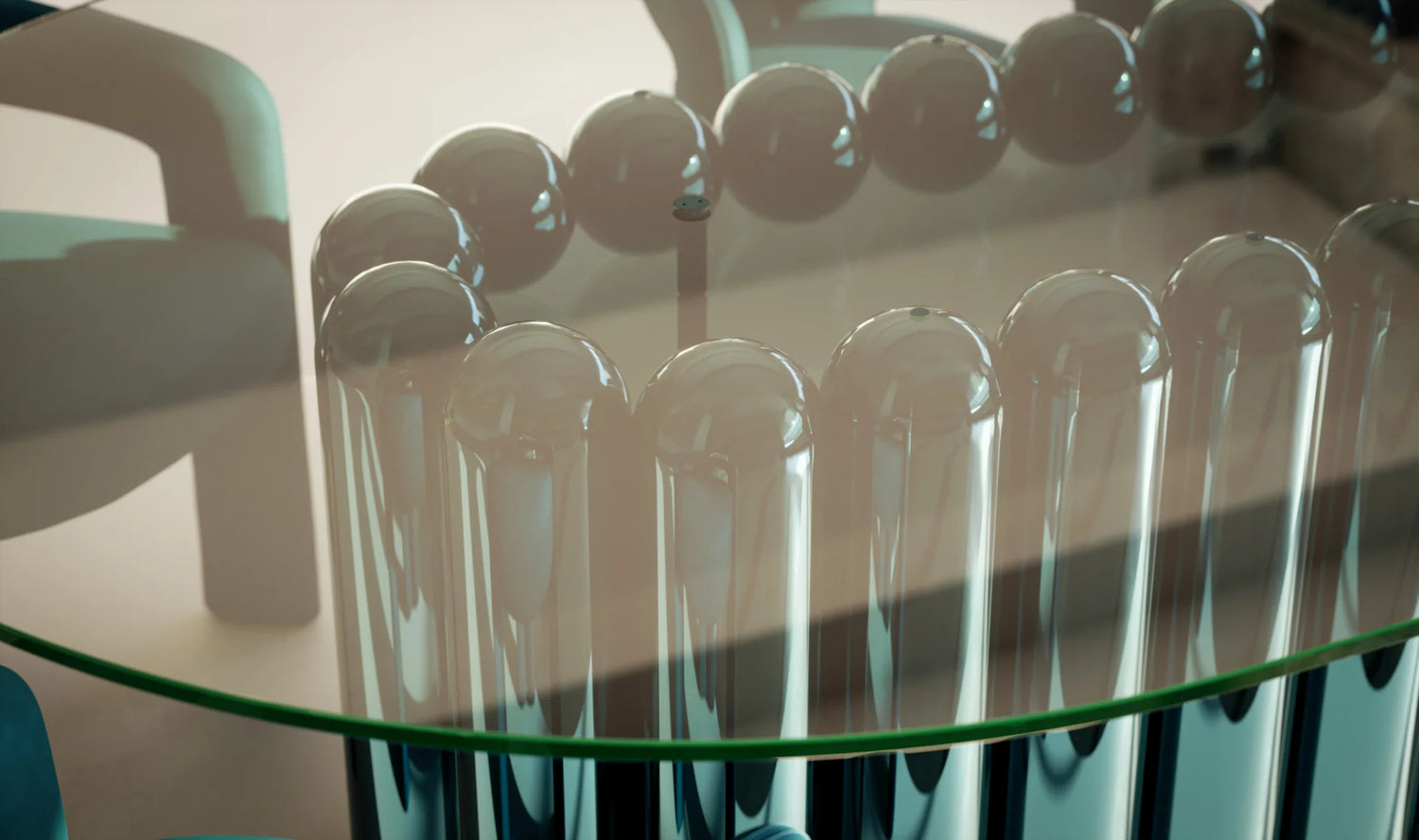 The Kupoli Dining 26 features a mesmerising body of twenty-six domed steel tubes, delicately finished with a glass top.