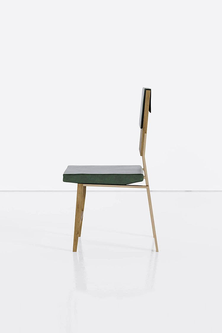 A single length of solid metal curves up the salvo dining chair and then bifurcates into a support for the seat and another for the back