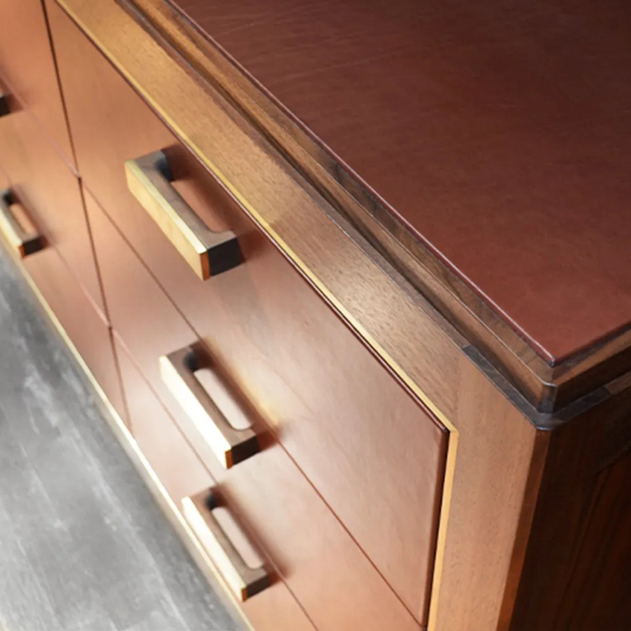 Introducing our newest iteration in Coquille D’Oeuf, hand-cracked eggshells in resin and lacquer adorn drawer faces and the blotter