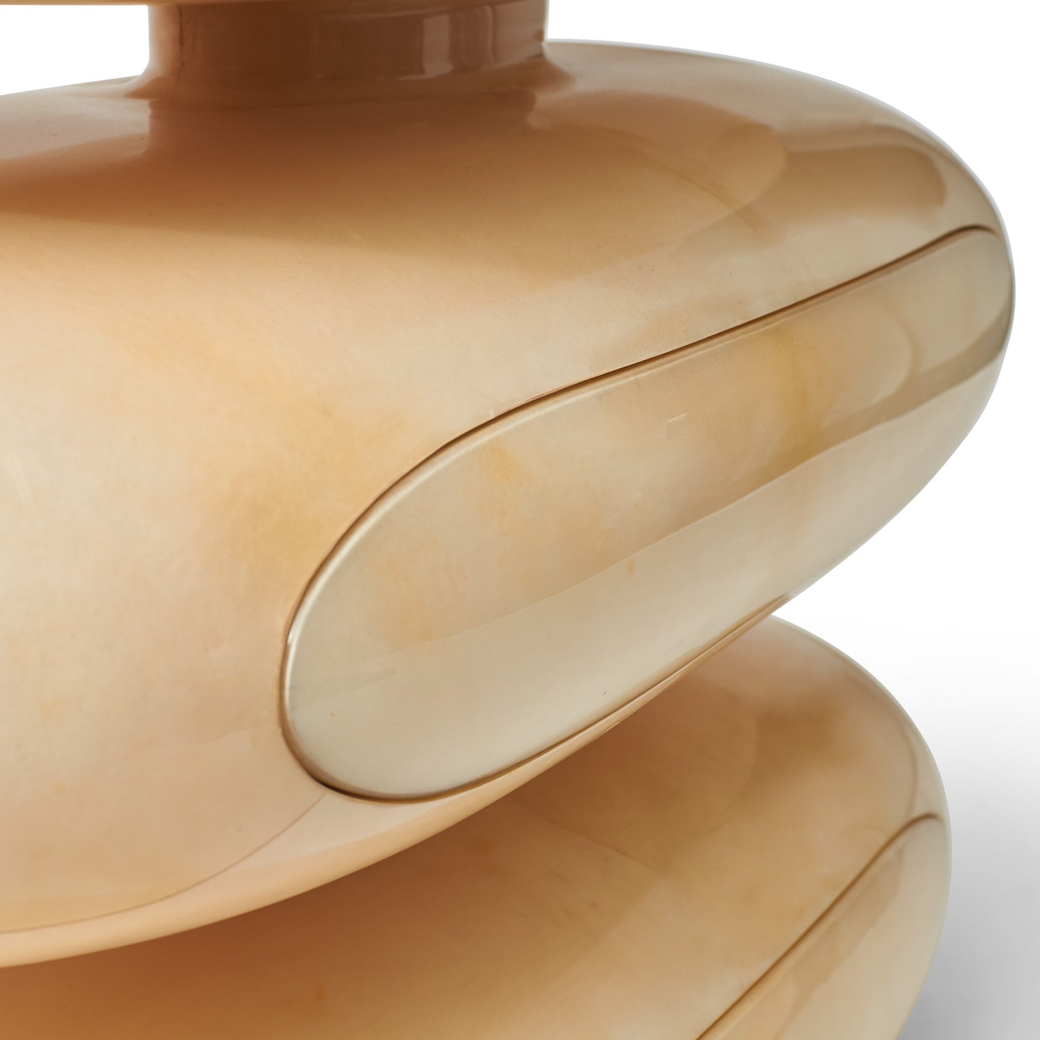 Three tiered chest of drawers masterfully mantled in natural coloured parchment with poured resin high gloss glaze