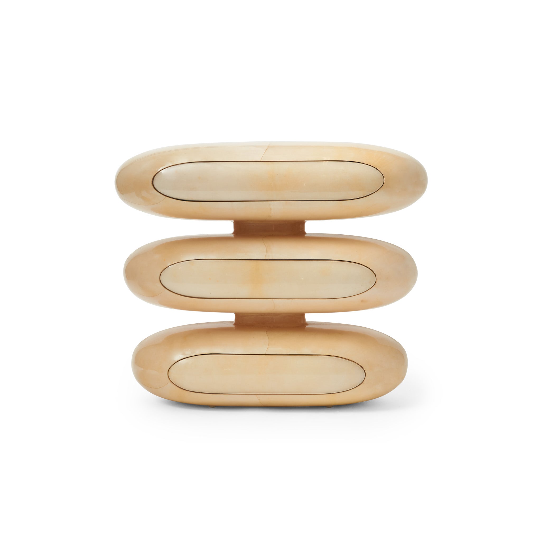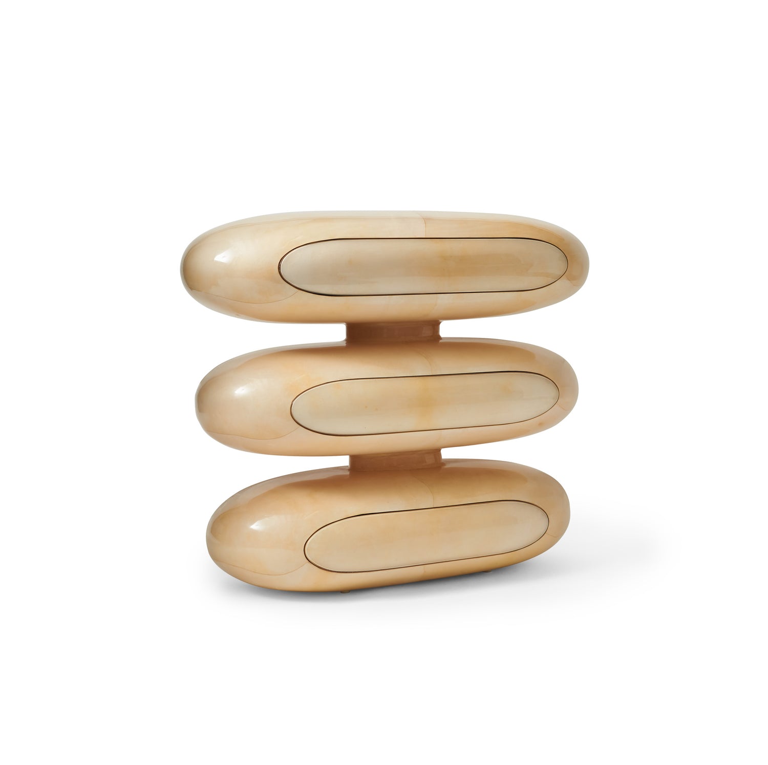 The tiers of this expressively futuristic looking chest of drawers are bubble like in form creating a interesting silhouette that captivates