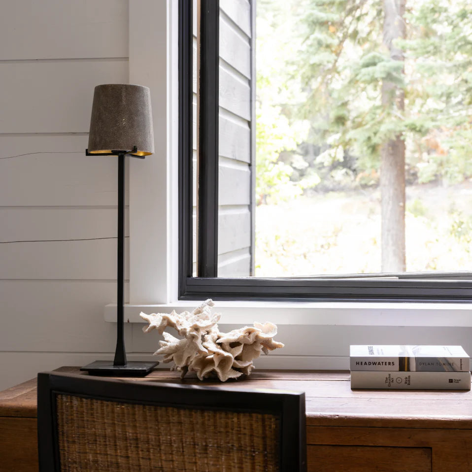 The Kenji is a celebration of pure, shimmering, natural wealth. Stingray shagreen shade with gold or silver leaf interior finish
