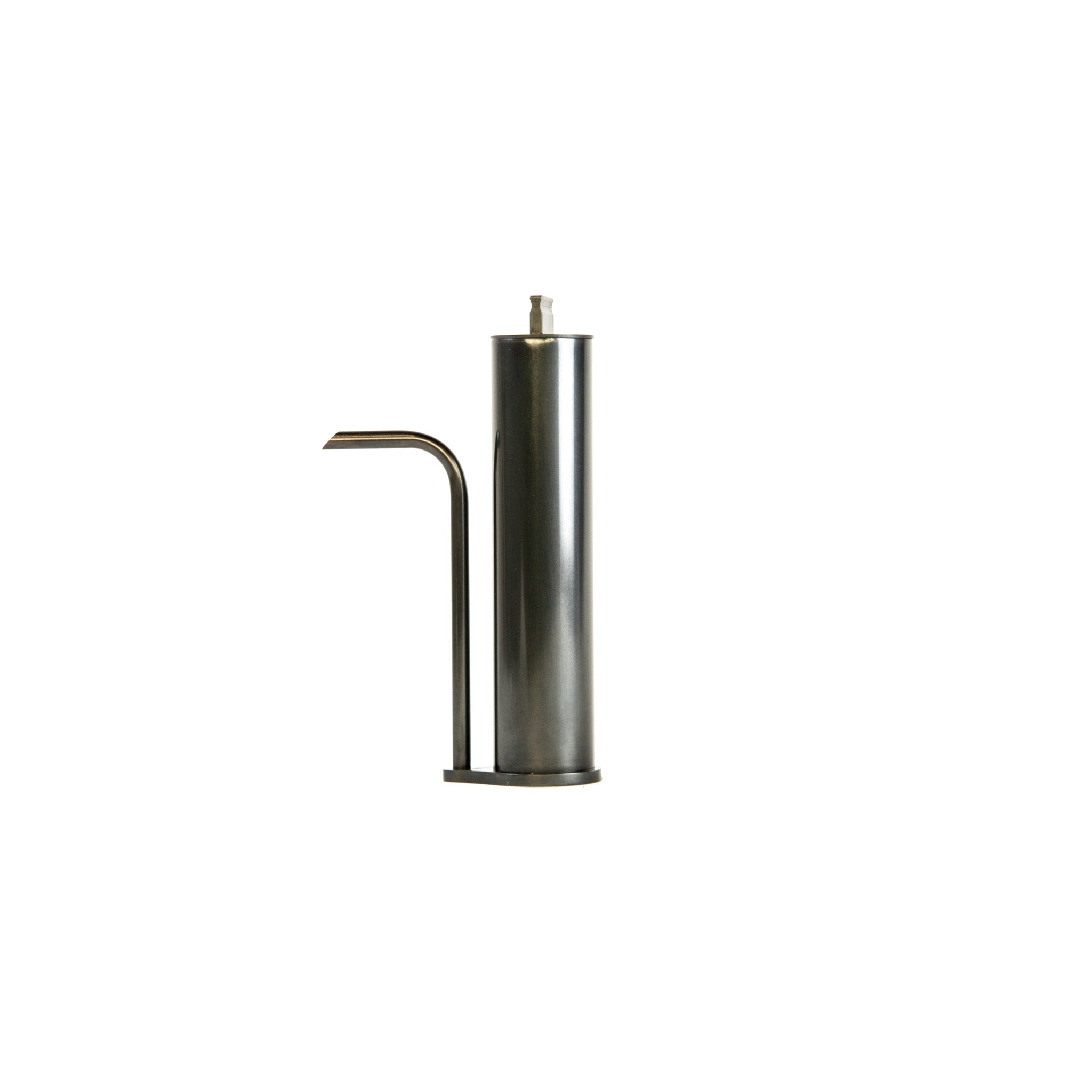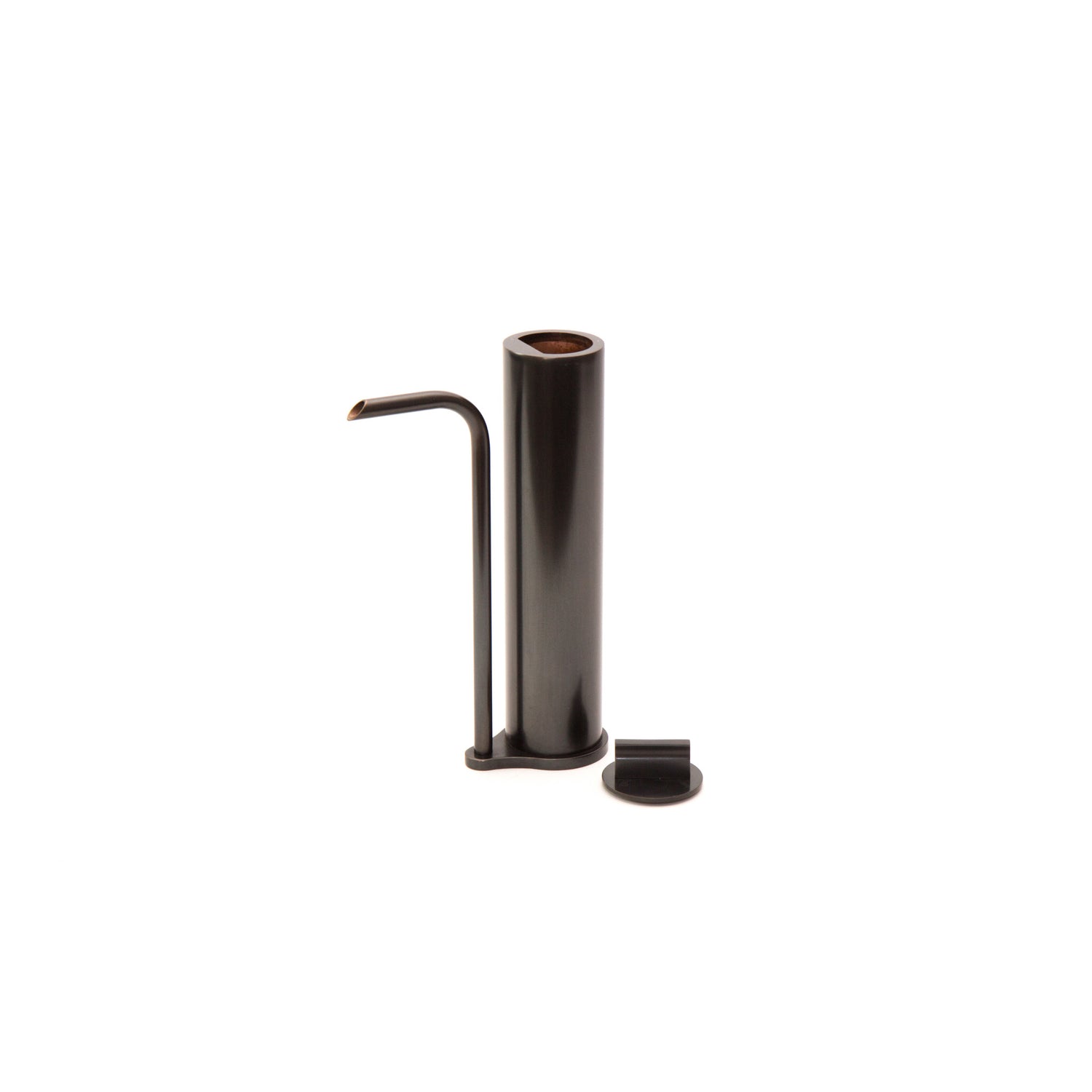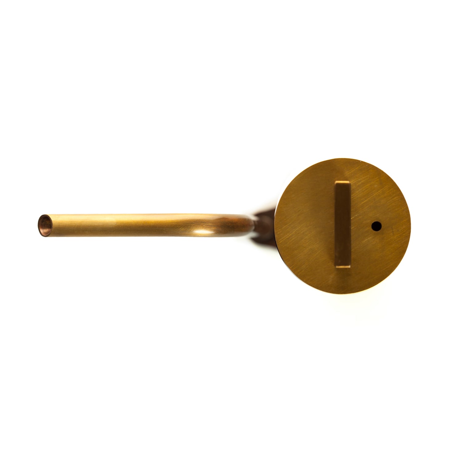 Made of brass and hand tarnished, the oil seems to magically move from the container to the spout without the two being connected