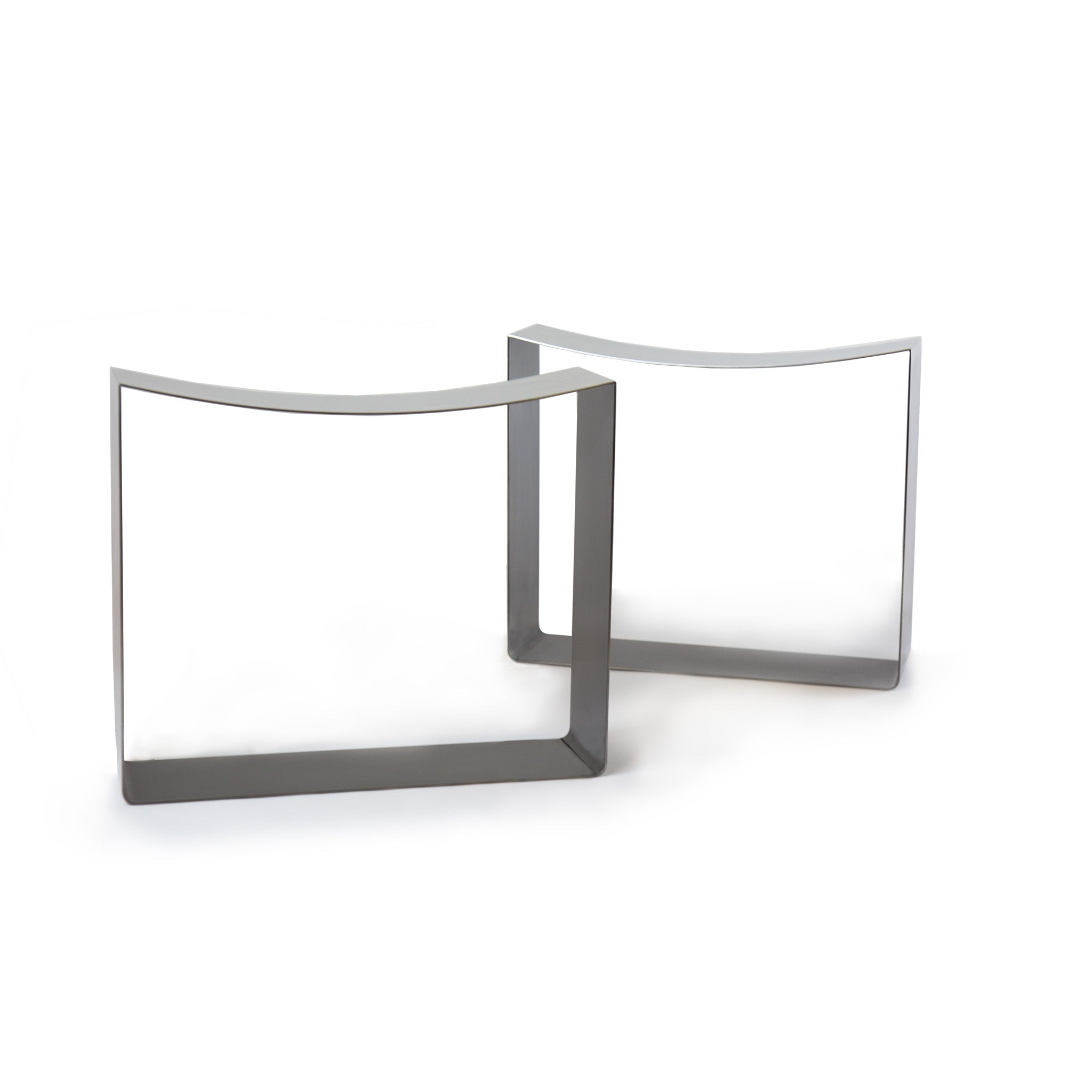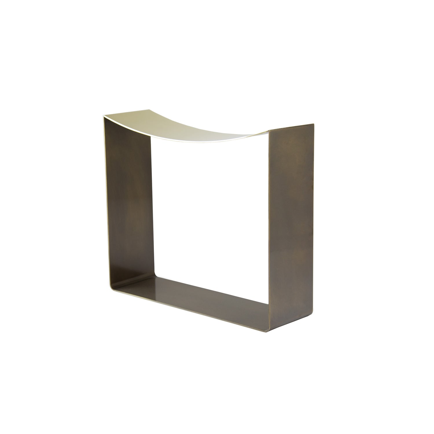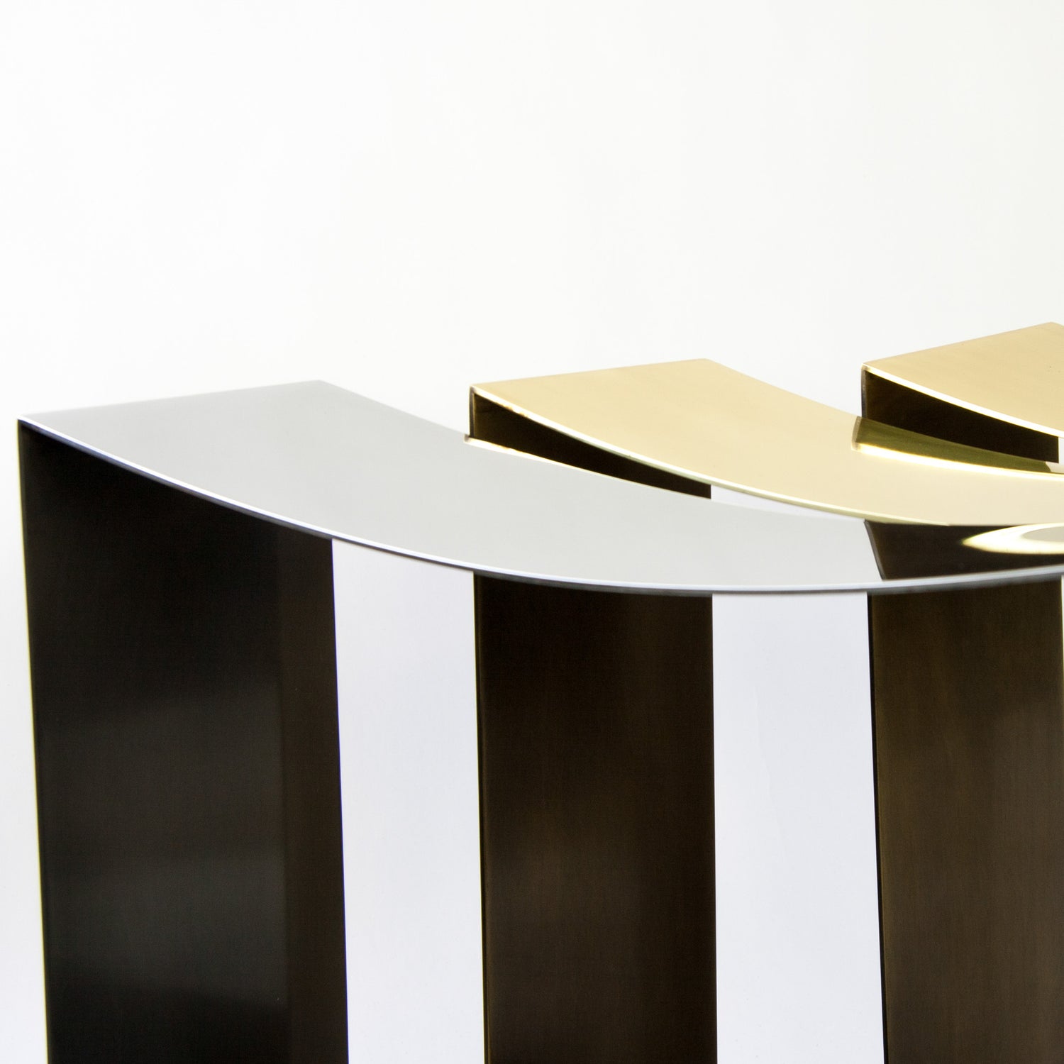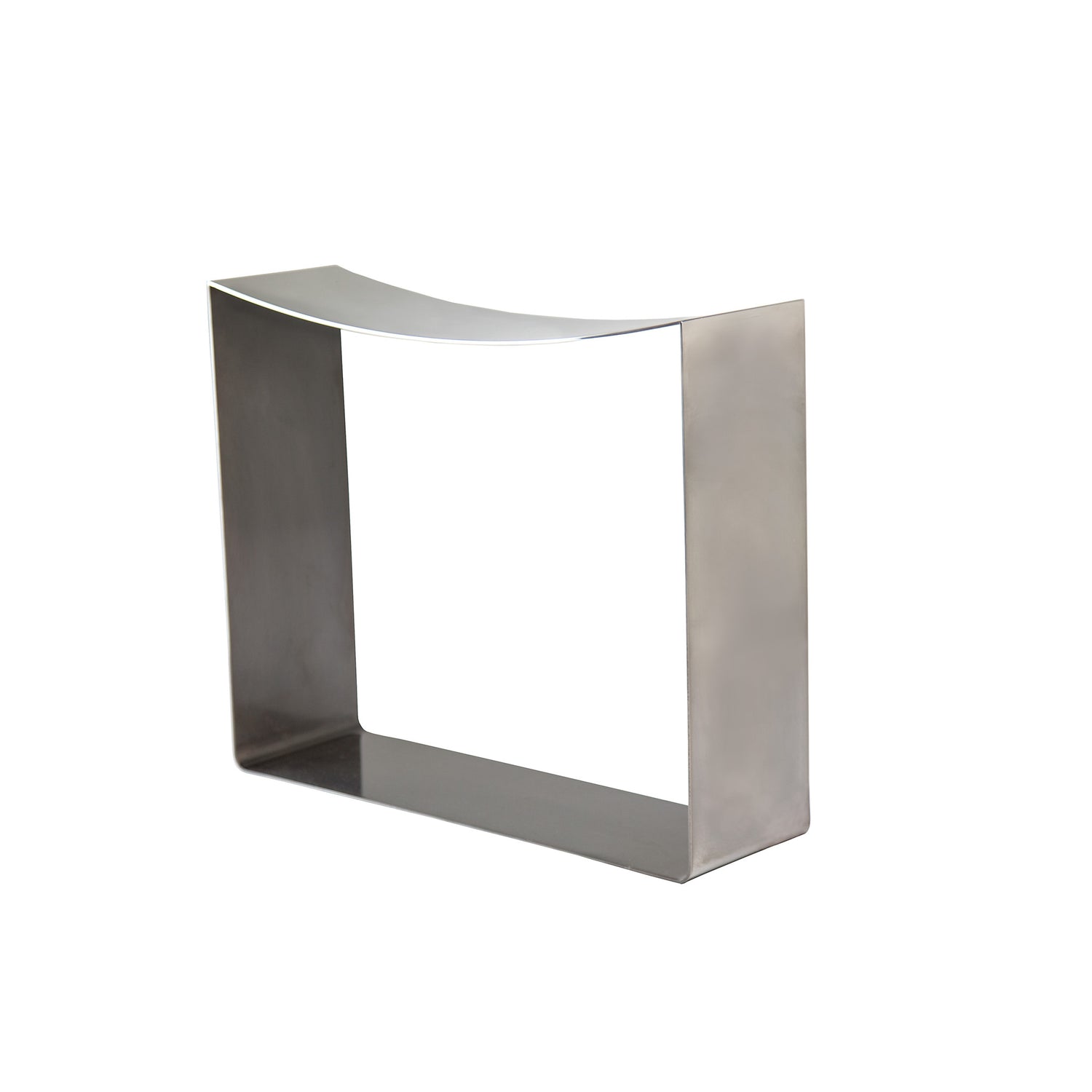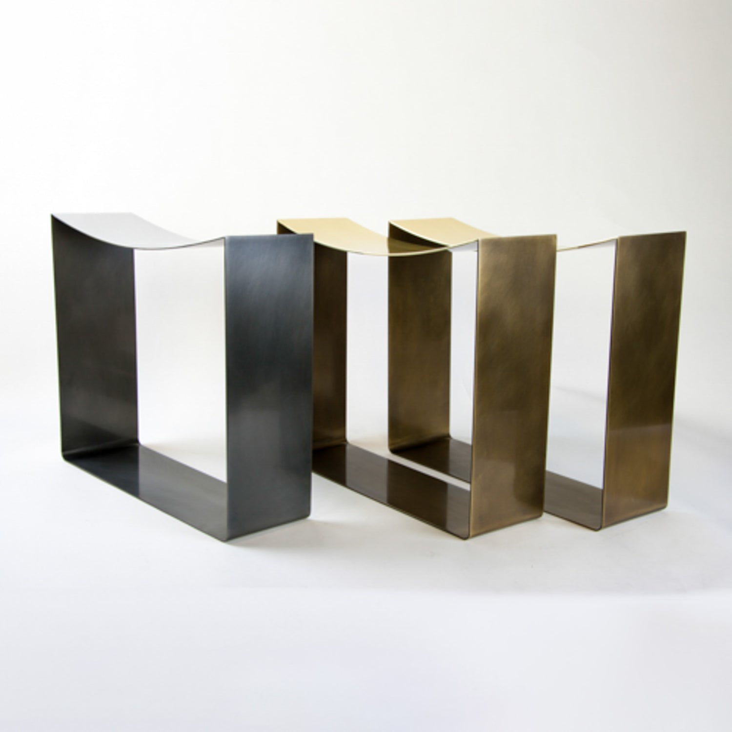 The Ribbon Stools are a combination of the side walls of brushed metal which is hand darkened and a polished top