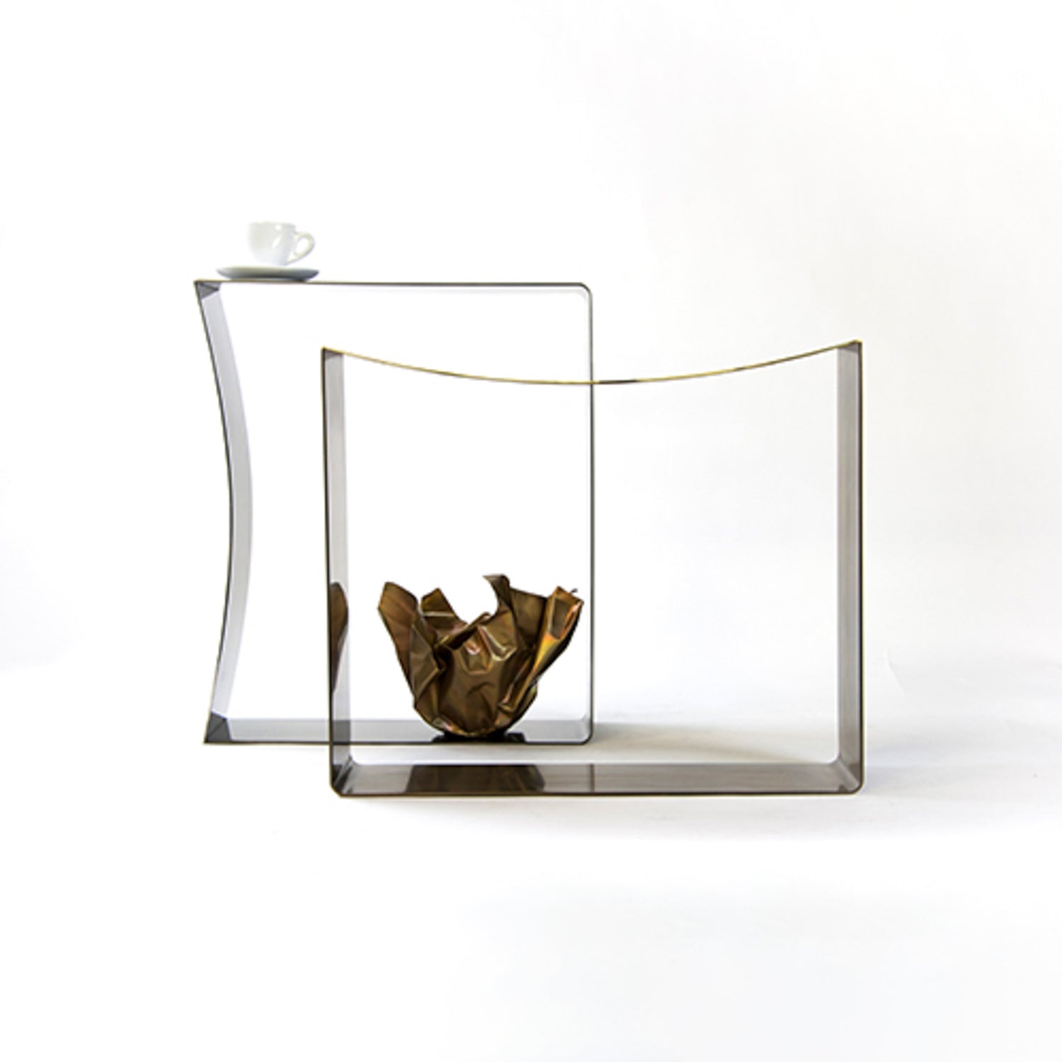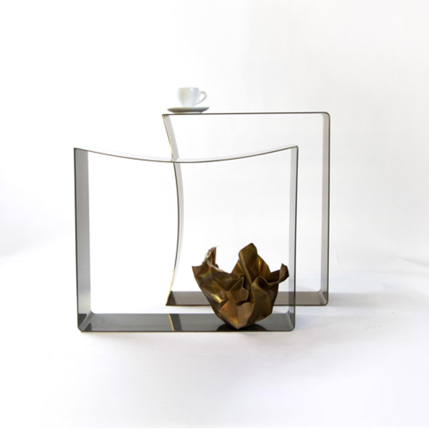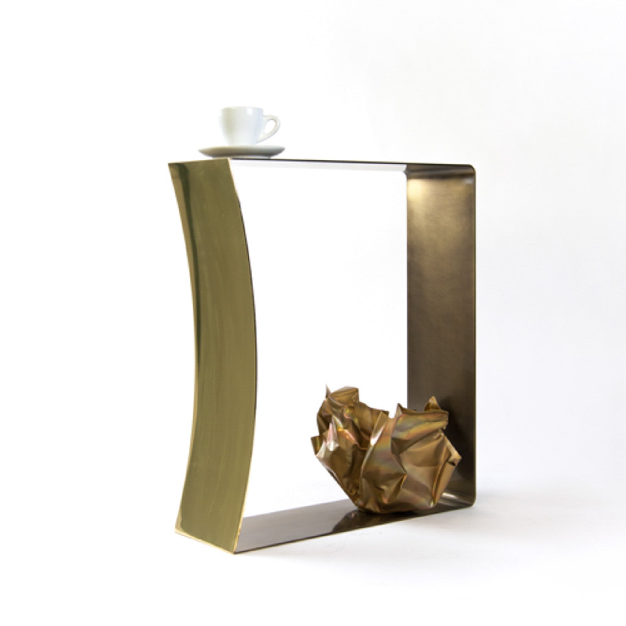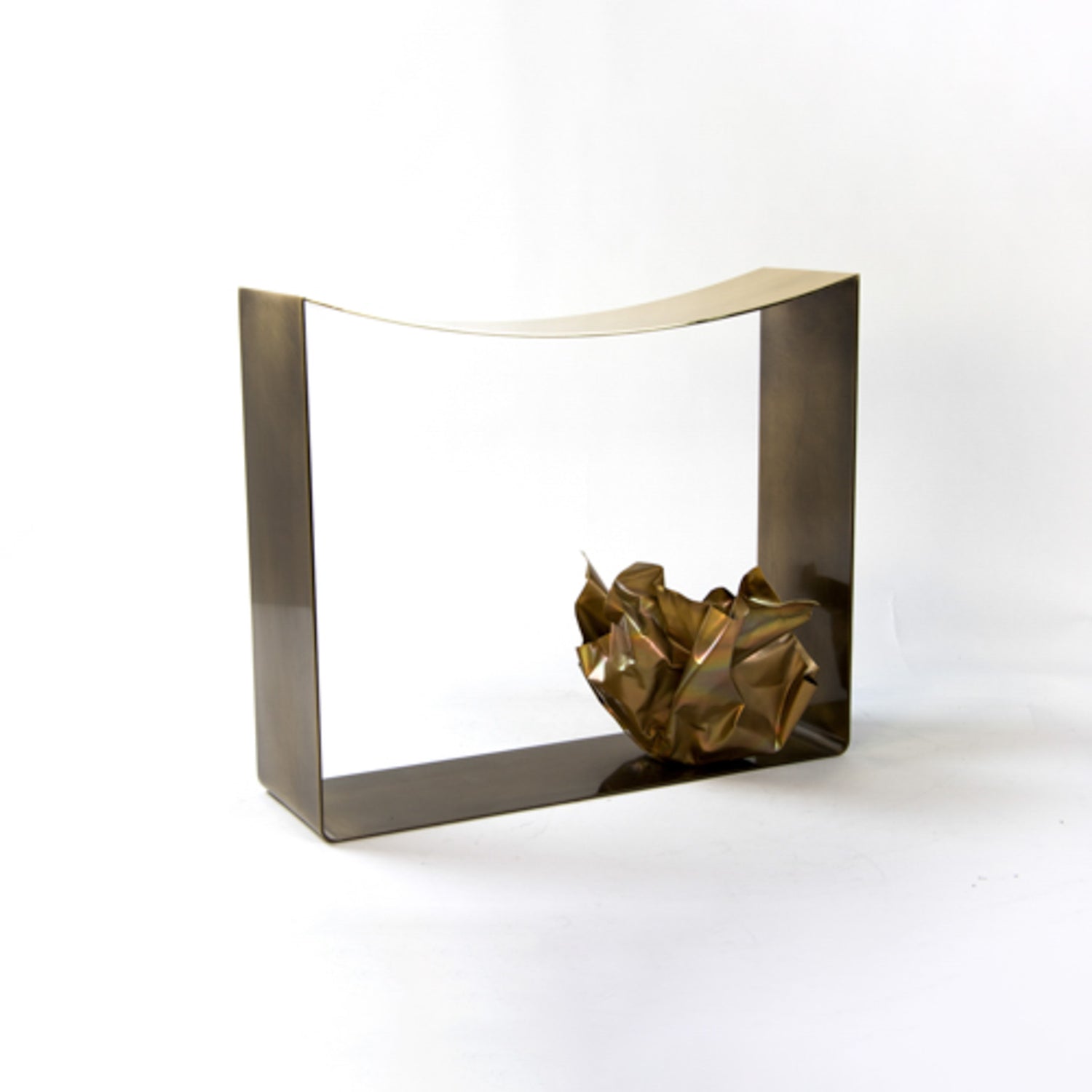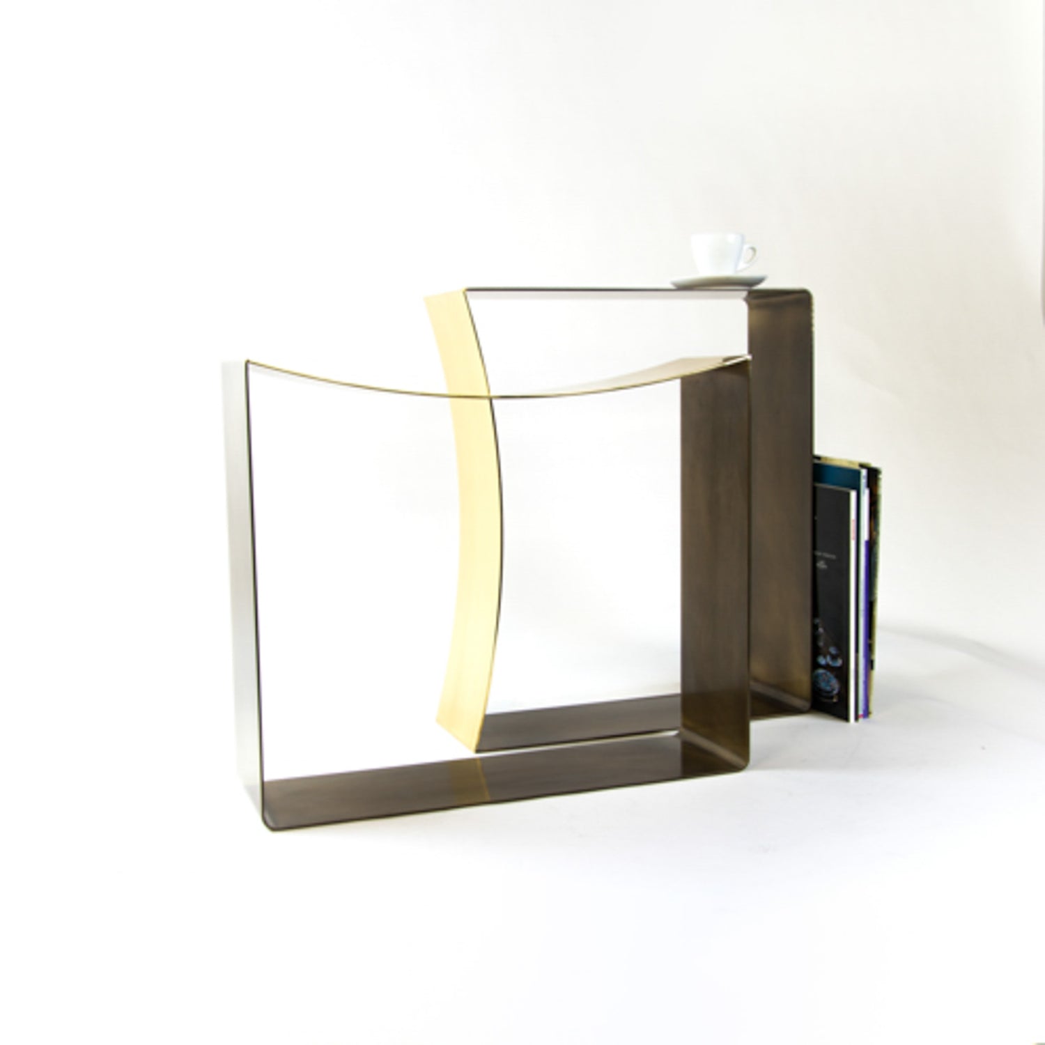 The Ribbon Stools are a combination of the side walls of brushed metal which is hand darkened and a polished top