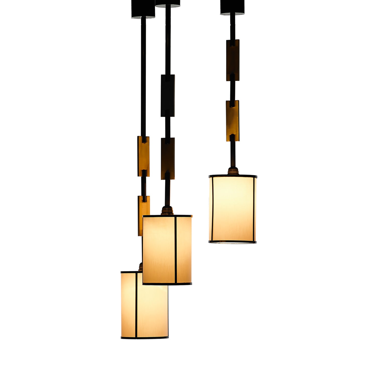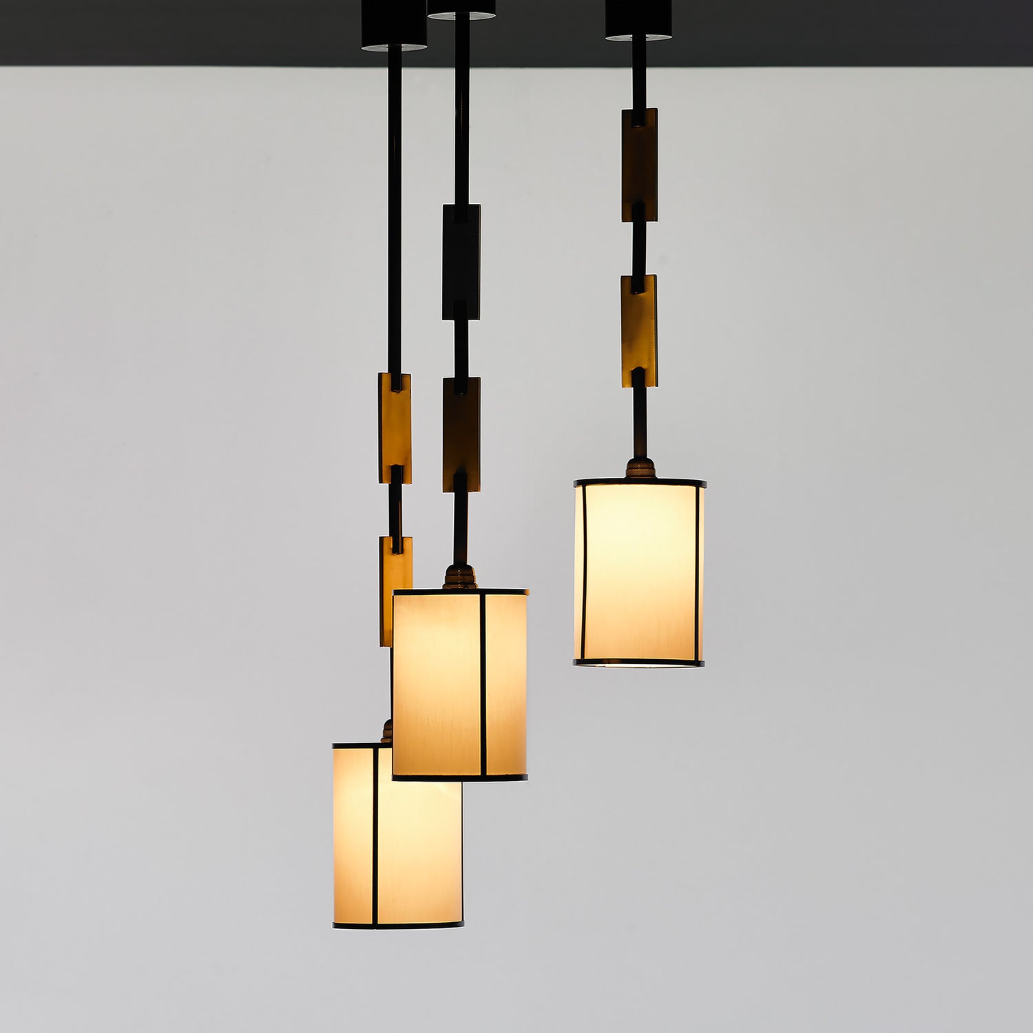 The chains are designed using a mix of brushed brass and dark bronze, which creates a striking yet harmonious contrast