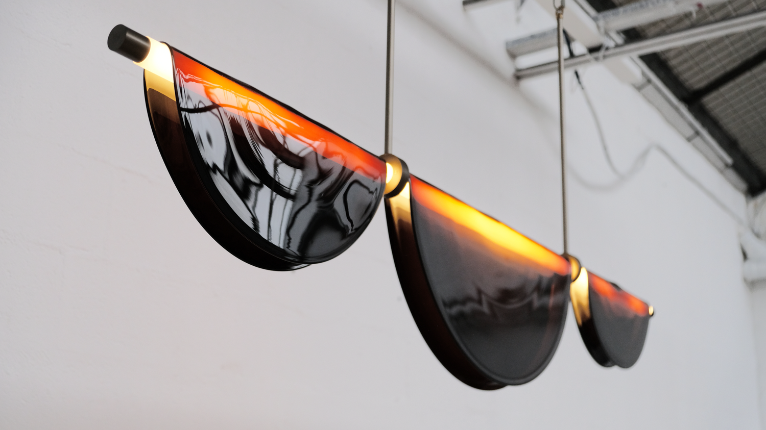 Graced with a tube designed to diffuse perfectly homogeneous light, the chandelier is adorned with three folded cives.