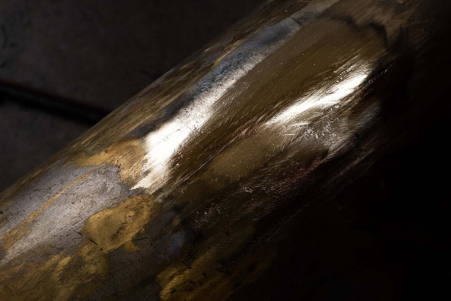 The cast fixtures in bronze, leaves its exterior pristine so the details of the natural material would be visible for the observer and an exposed roughness of the textured interior that is enhanced with the light to create an altar-like experience.