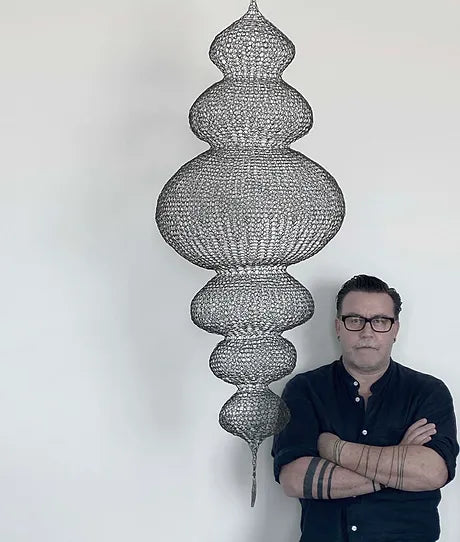 The inspiration for Michael's work is twofold, rooted in his childhood experiences and encounters with influential artists. As a young child, he was mesmerized by the mechanics of knitting, observing his mother and grandmother craft intricate pieces from yarn. These early memories laid the foundation for his fascination with textile manipulation and the transformative power of materials. It was during a 2017 exhibition in Chelsea that Michael had a serendipitous encounter with the captivating wire sculptures of the late Japanese American artist, Ruth Asawa. Asawa's own childhood experiences of tracing shapes while working on her parents' farm resonated deeply with Michael, triggering a dormant mechanical memory and sparking his exploration of wire as a medium.
