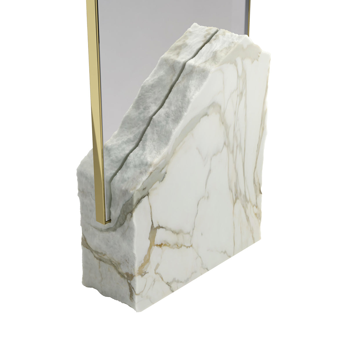 Our desire to see ourselves as others see us, is captured here in a free-standing mirror, lined in solid brass and placed in portoro marble