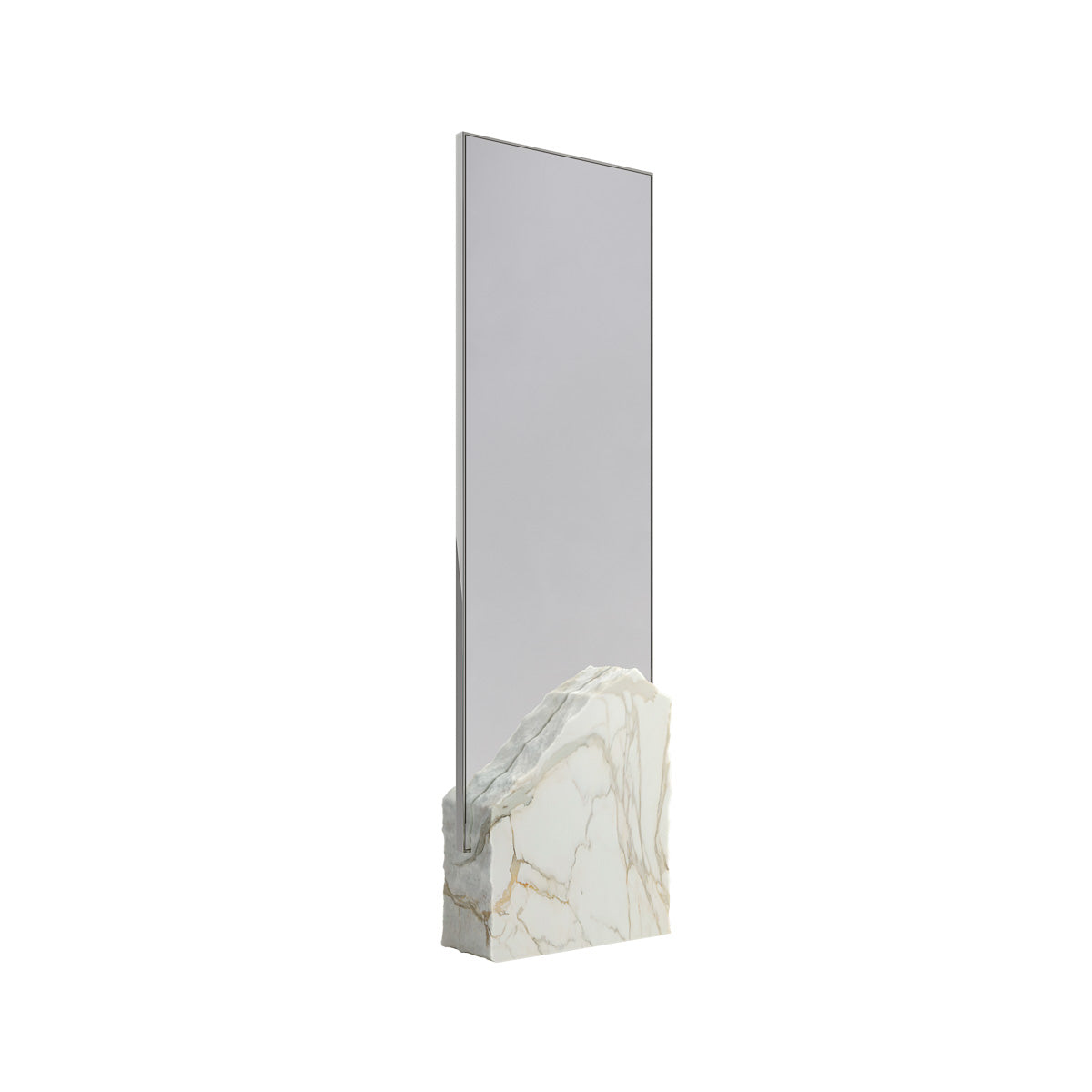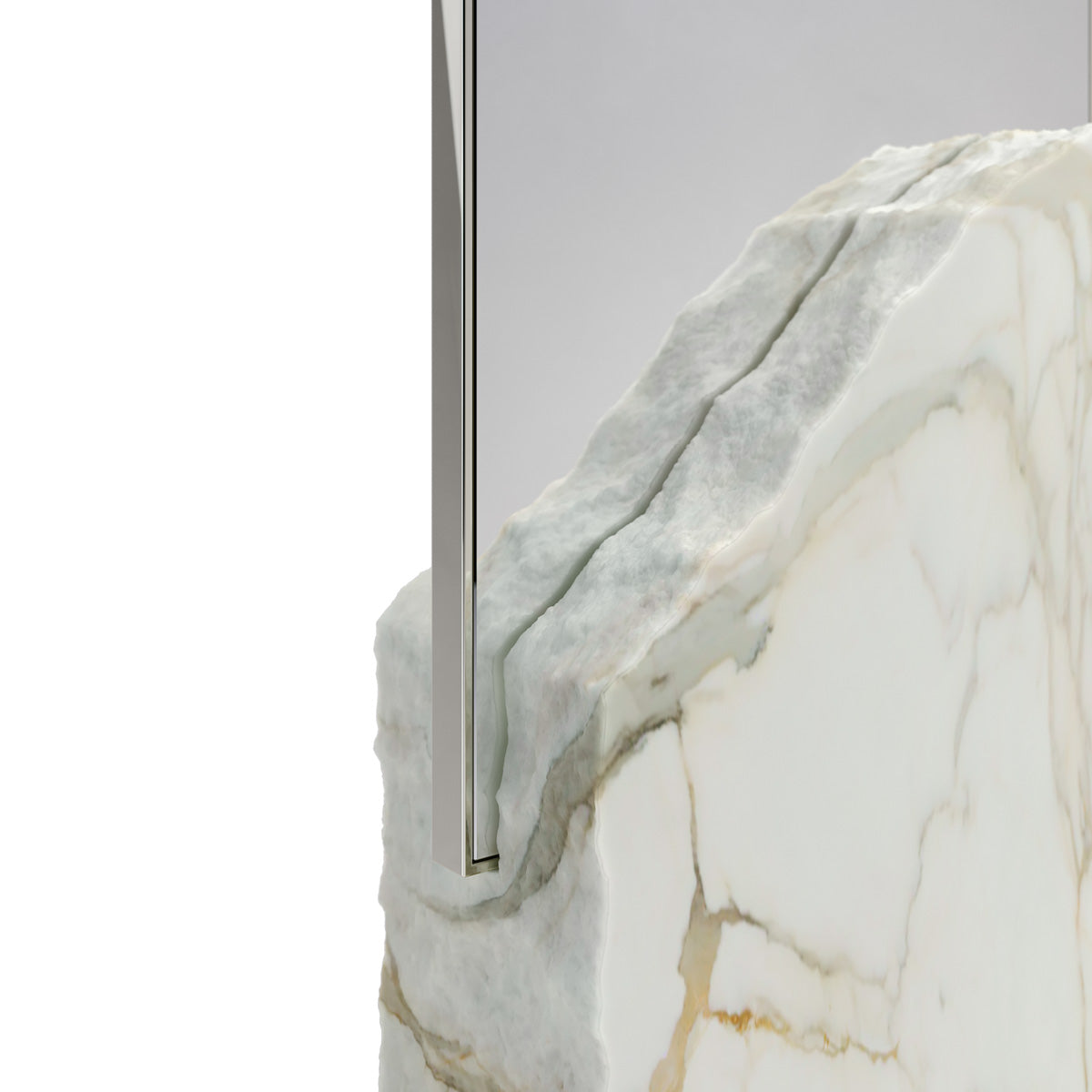 Glass and stone are skilfully brought together in the presentation of a unique piece, the Lunae Mirror