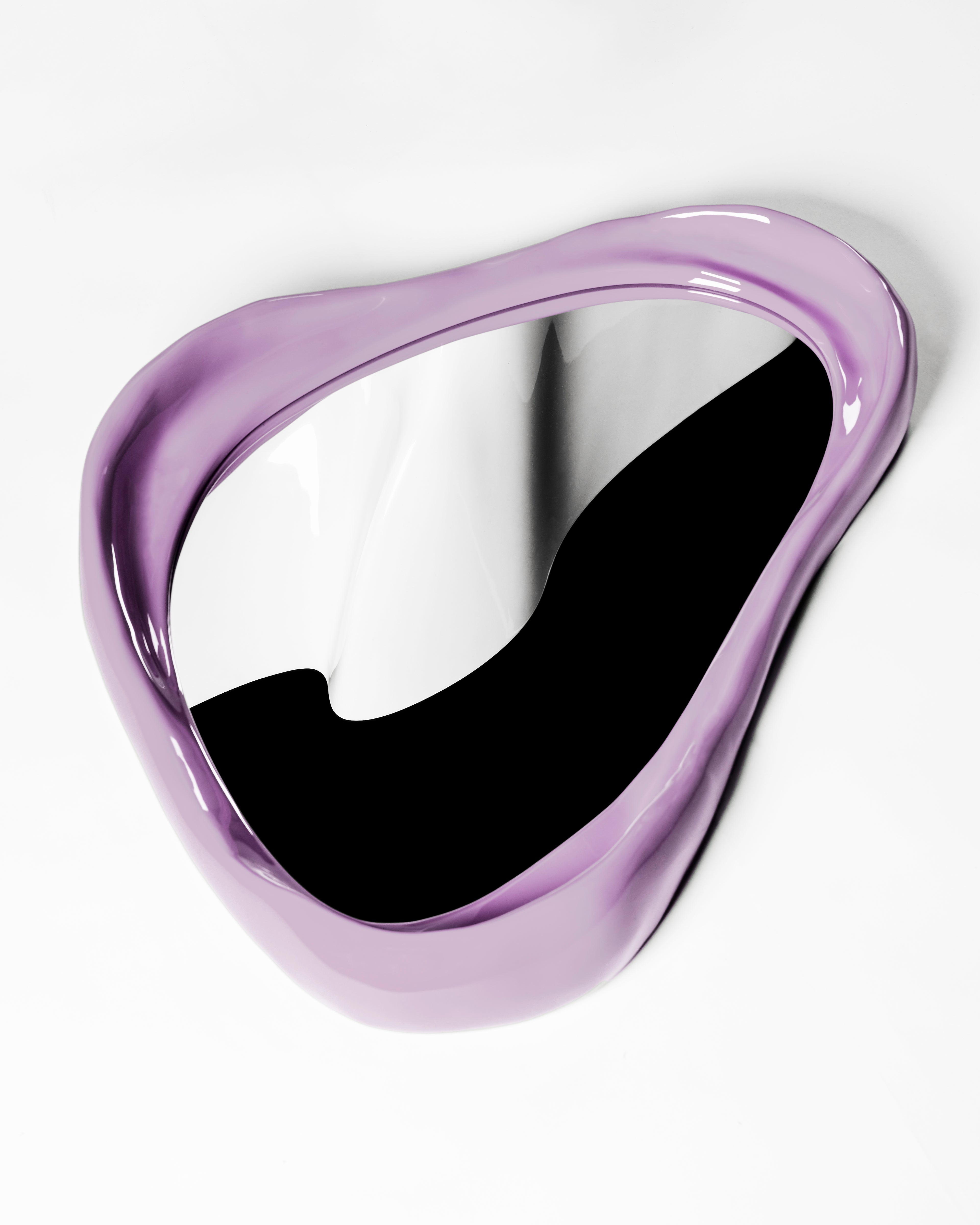 Hand formed and hand painted lacquered mirror.