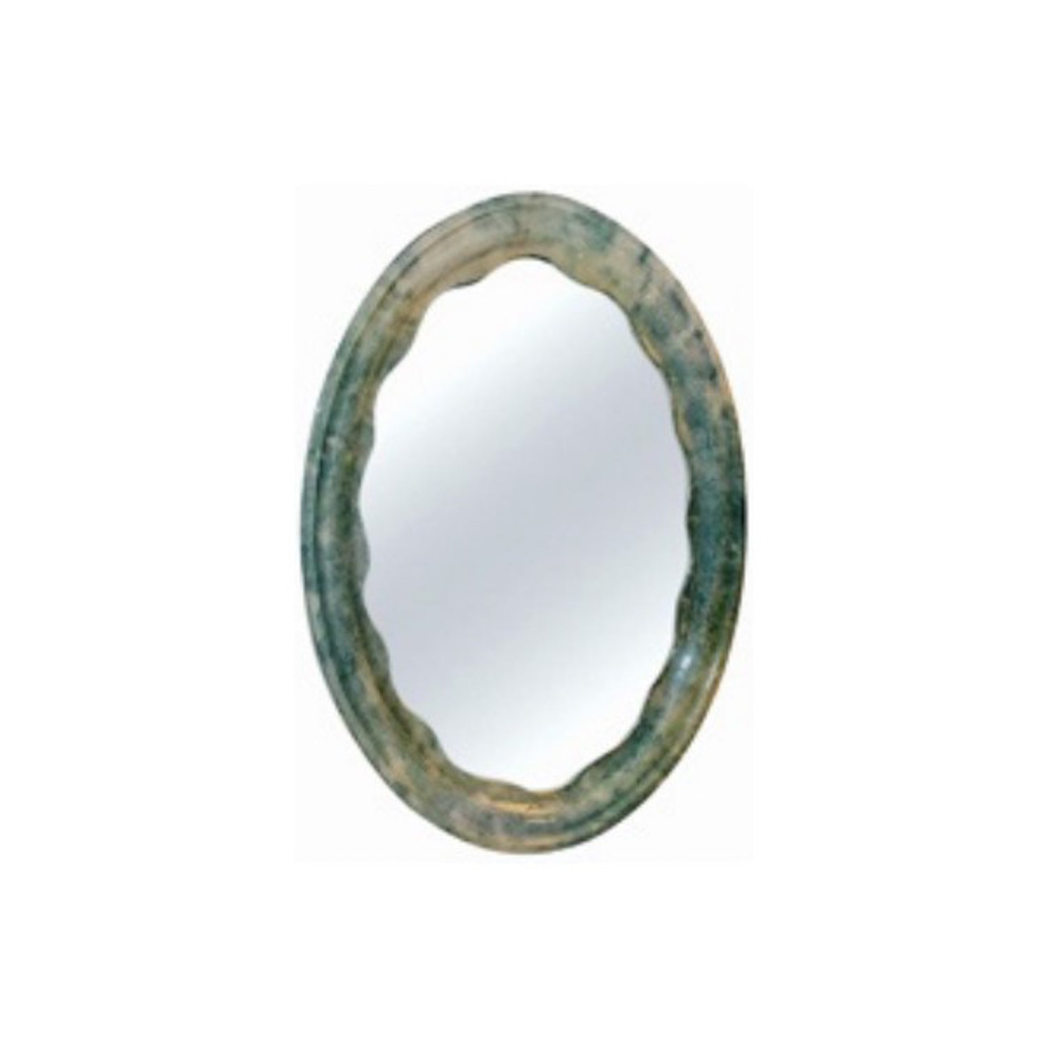 Oval Parchment Mirror is a wallhanging hallway mirror finished in hand-dyed parchment