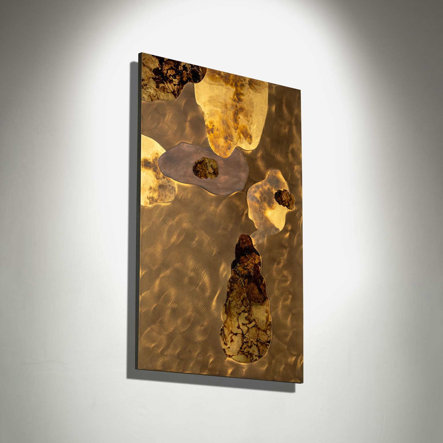 Wandering nebula in endless seas of gold dust with planetary forms making their way to unknown destinations. Art for your souls in precious metals and fine craftsmanship.