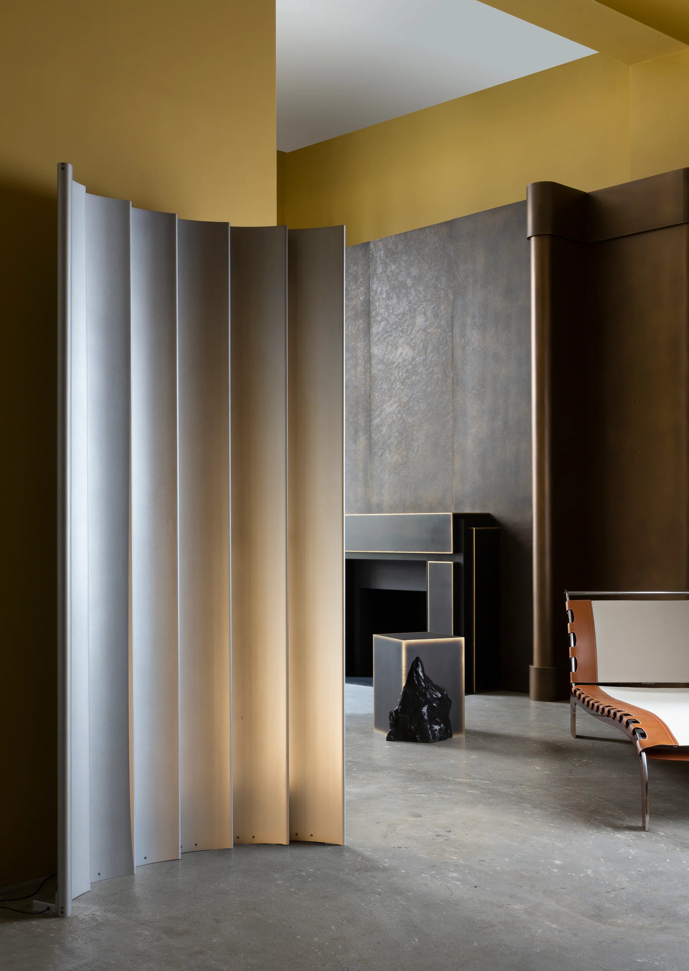 "Inspired by 70s design, the Line folding screen offers warm, ambient lighting with silver highlights."