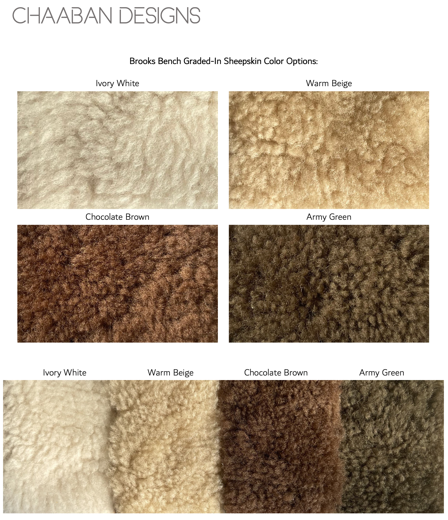 Graded in short haired shearling wool with colour options available
