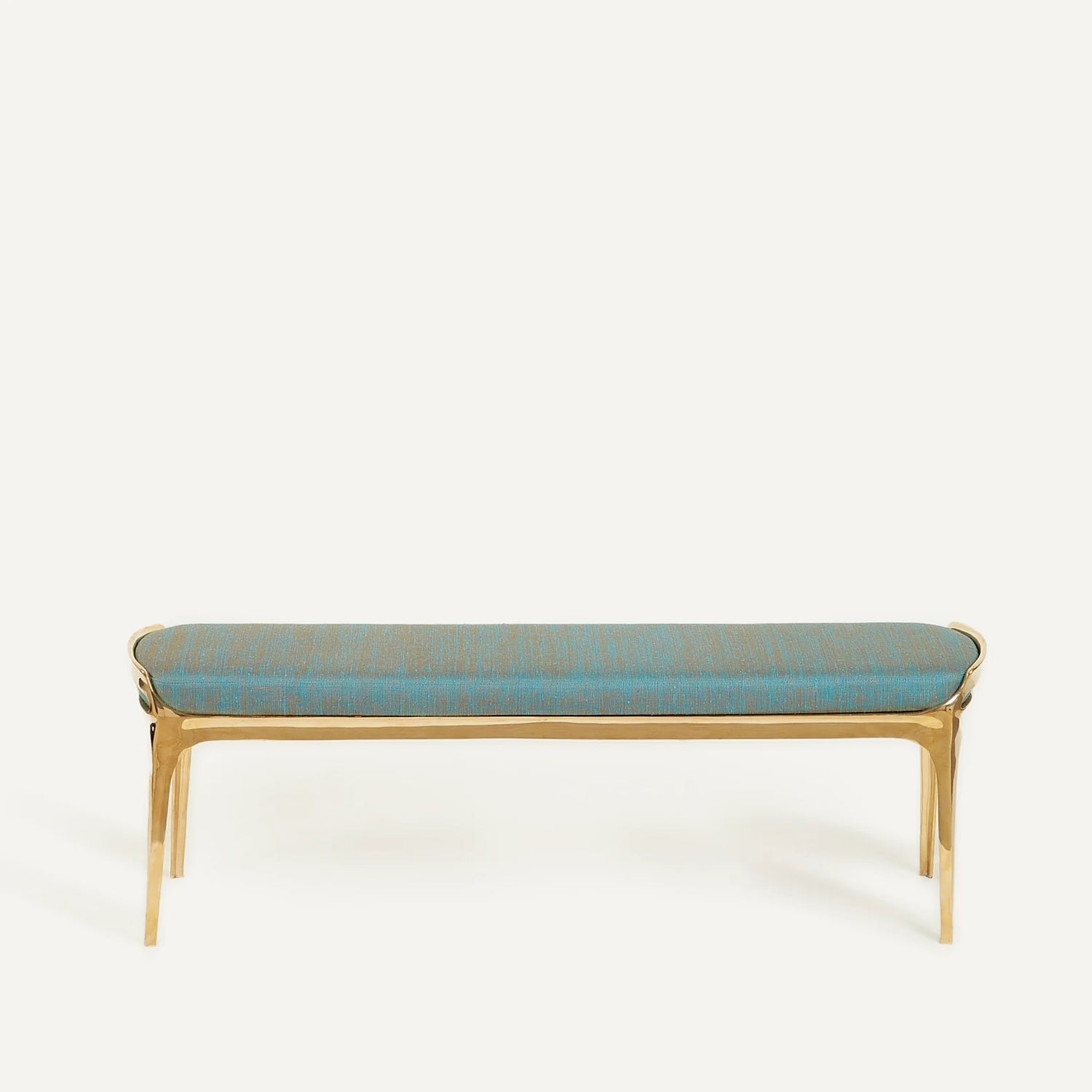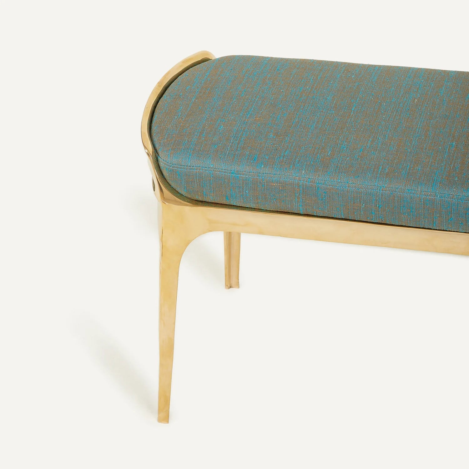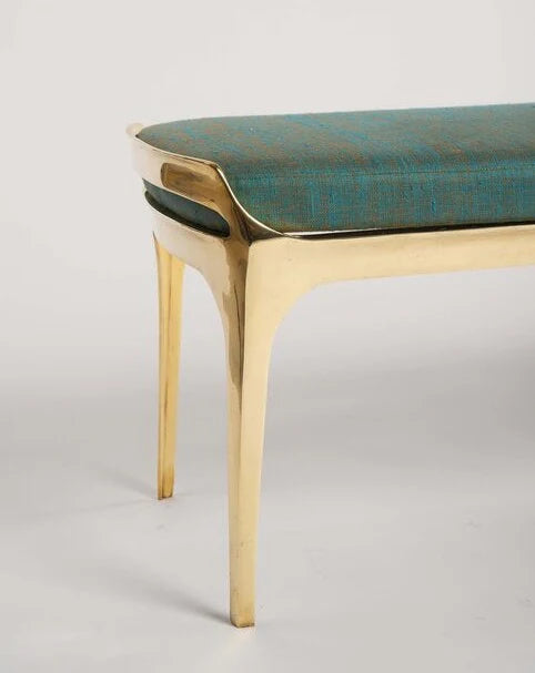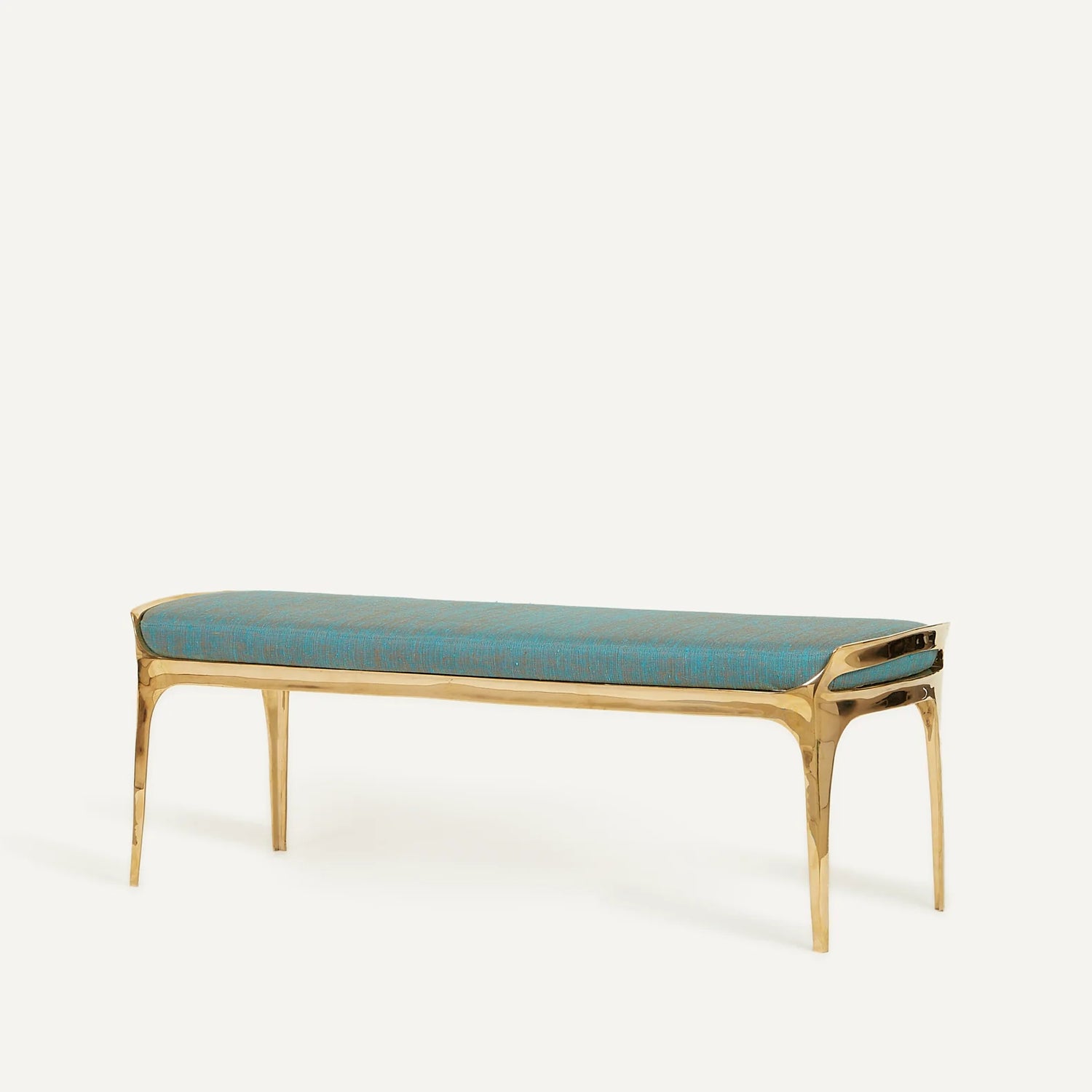 Gold and silk, two great prizes of antiquity, are combined in the Bruda Bench into a faintly nautical yet practical, gemlike profile