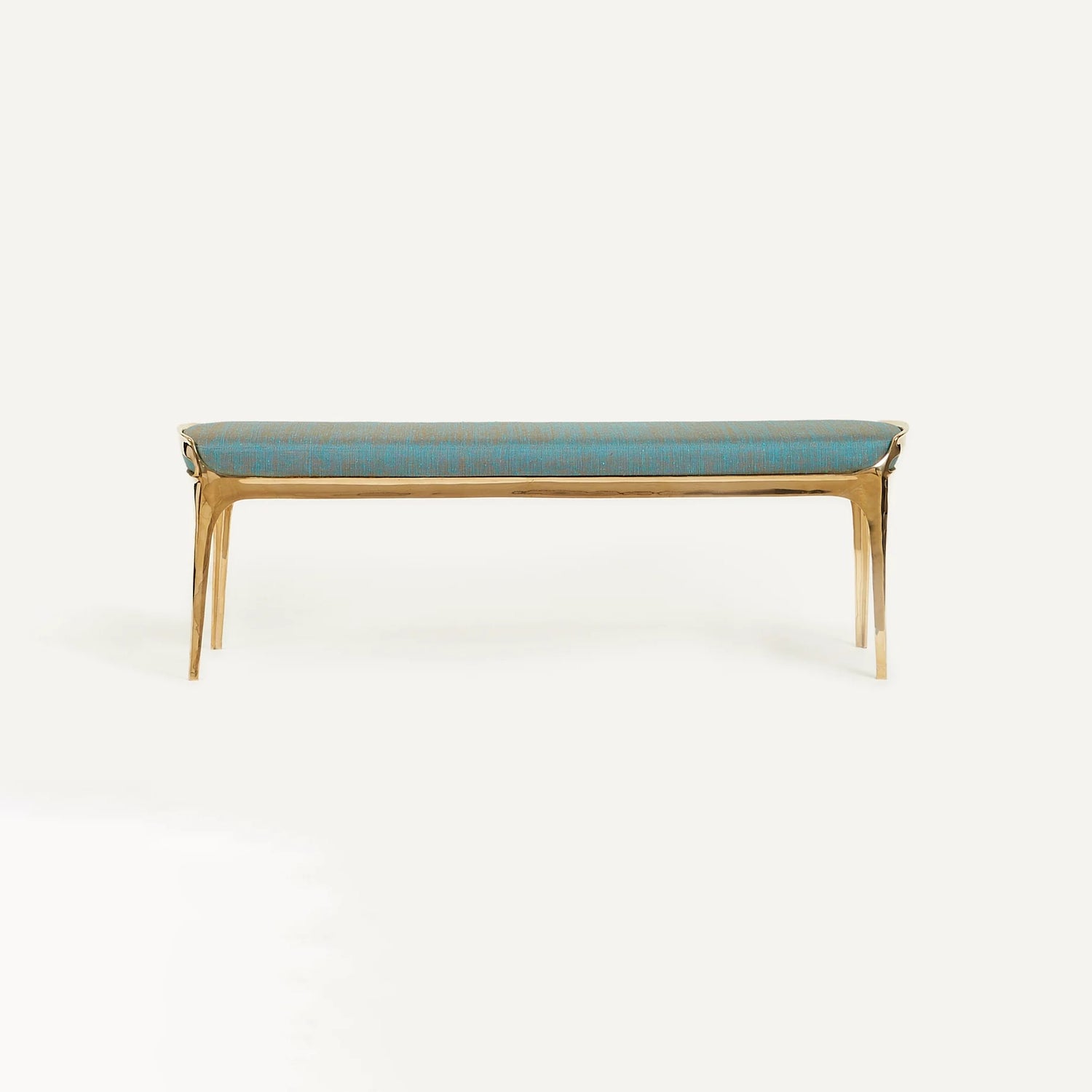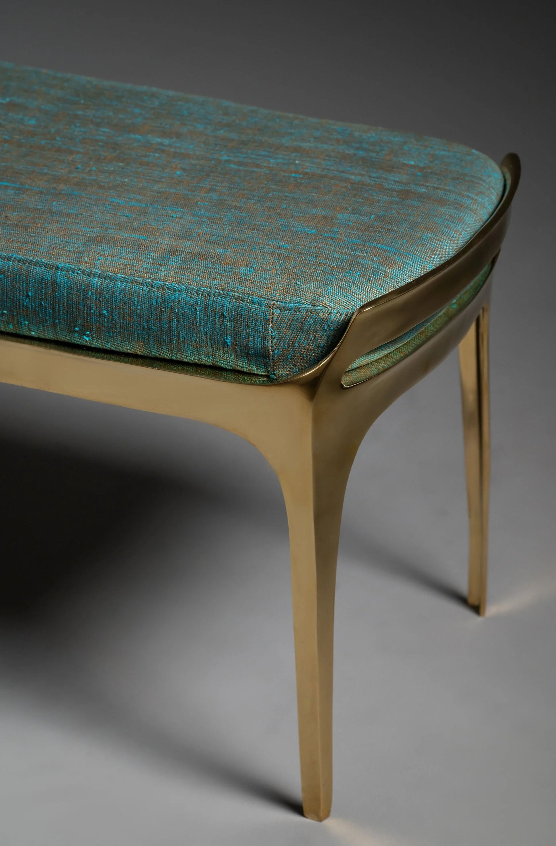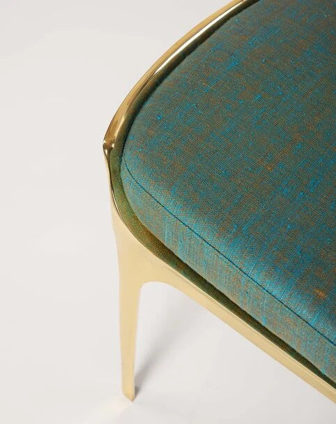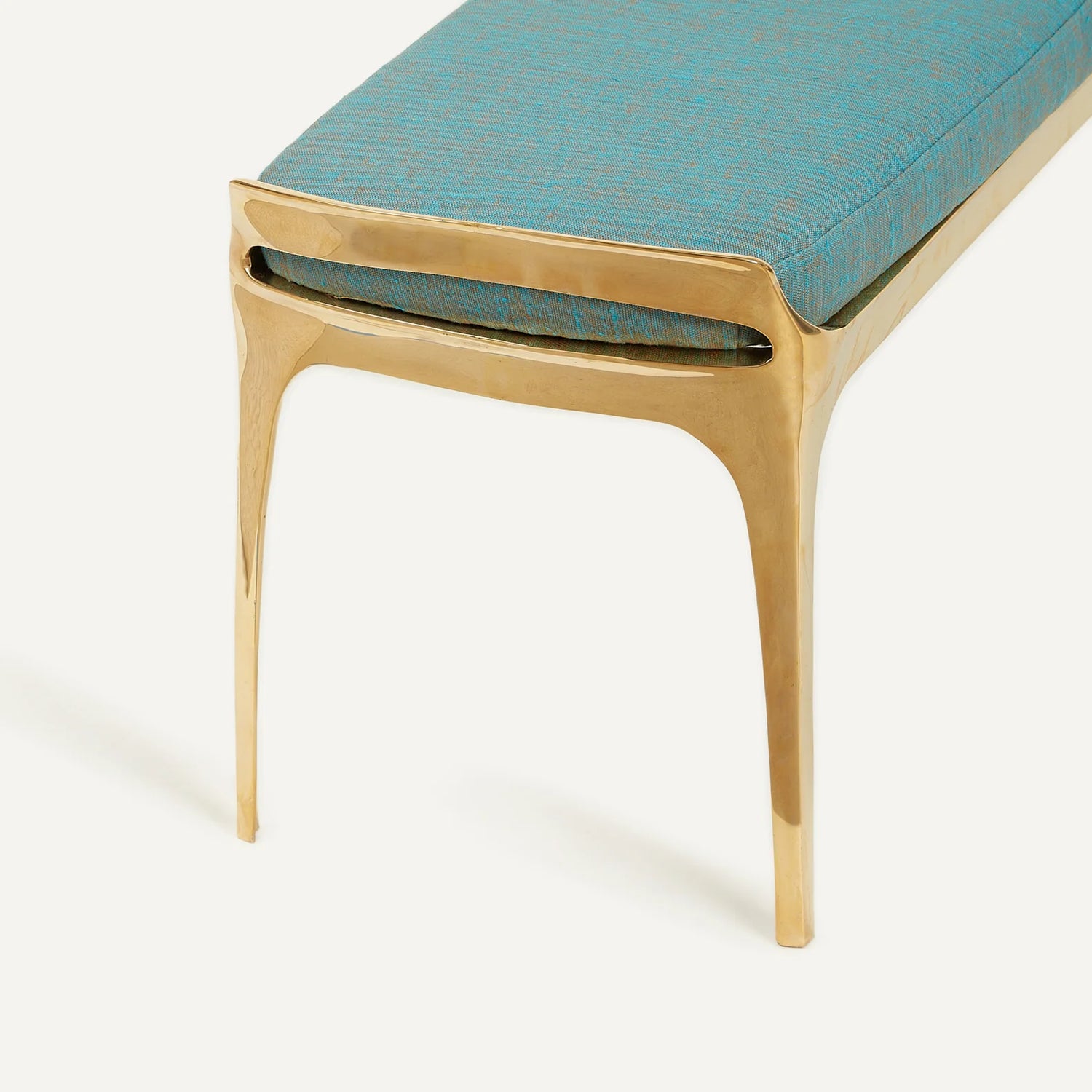 Gold and silk, two great prizes of antiquity, are combined in the Bruda Bench into a faintly nautical yet practical, gemlike profile