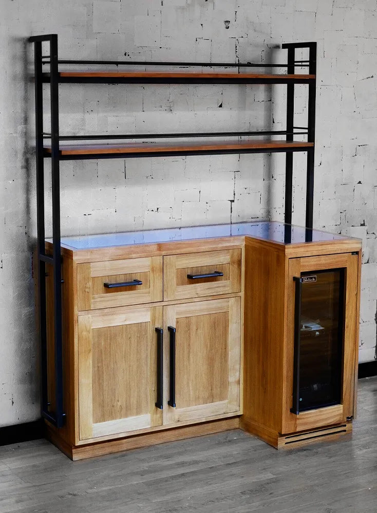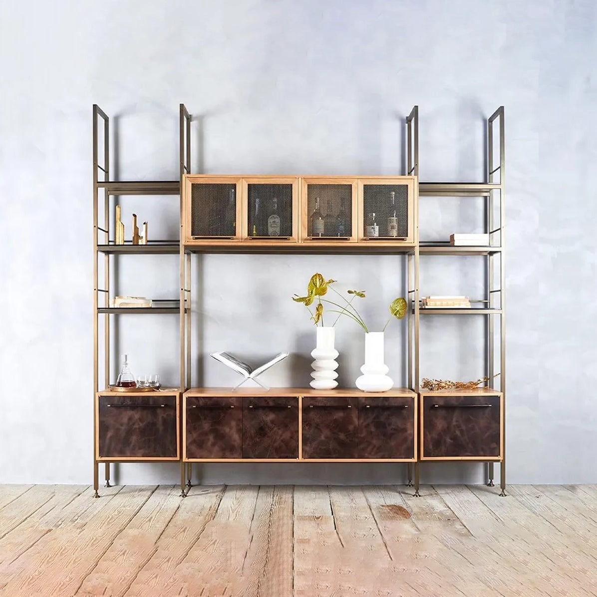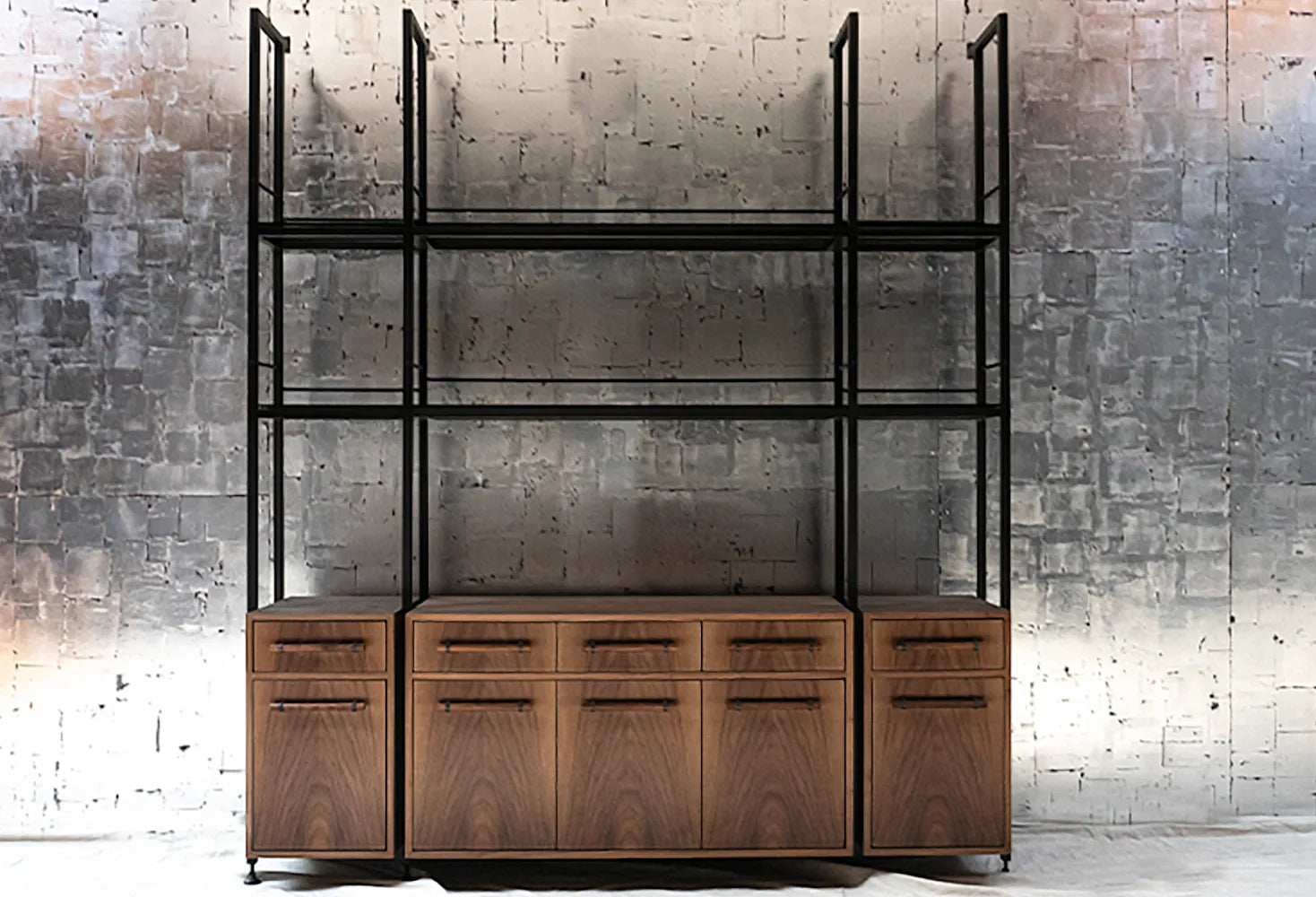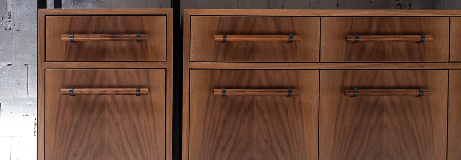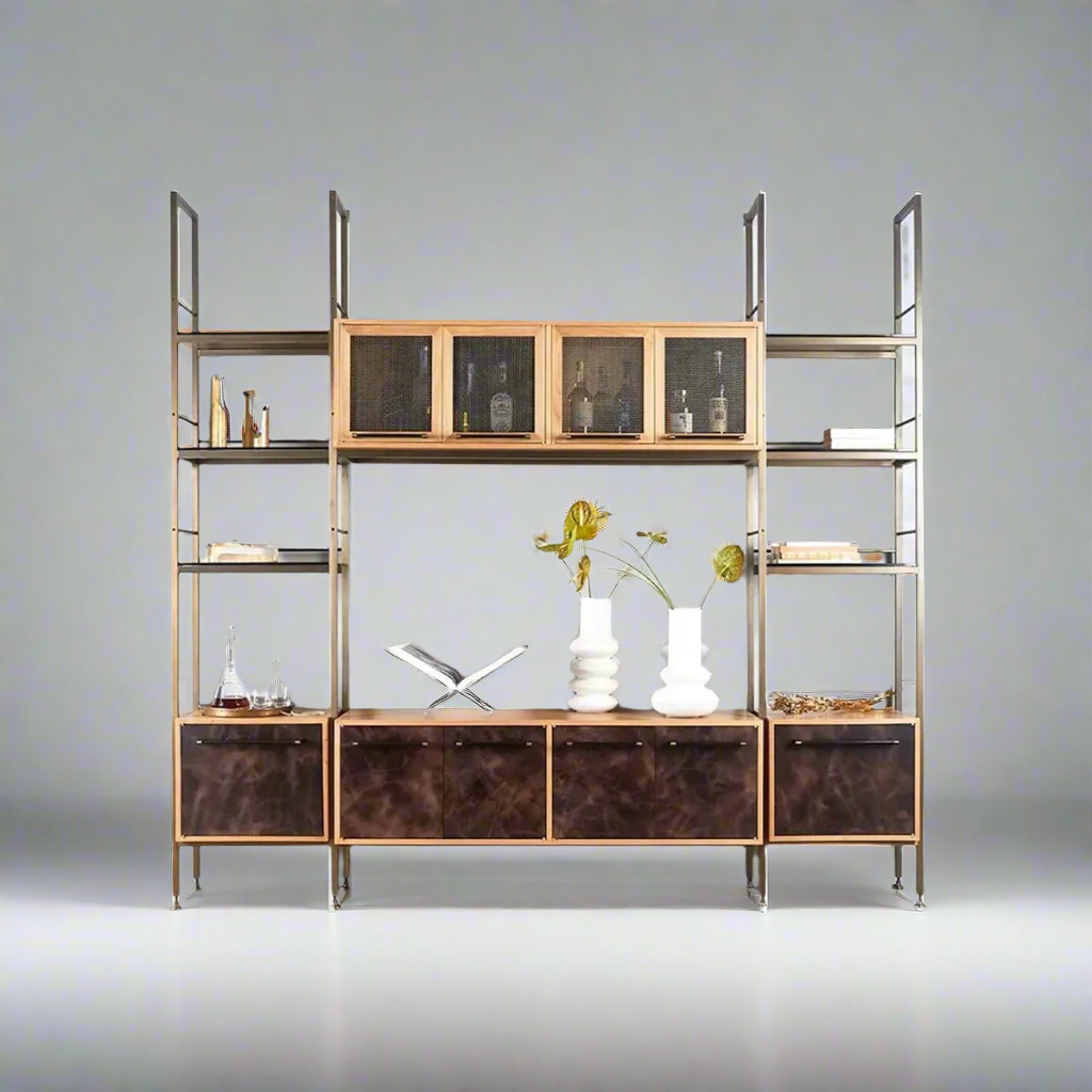 Infused with a rugged-meets-refined aesthetic, leather door fronts provide a tailored look to the word casework and metal forms