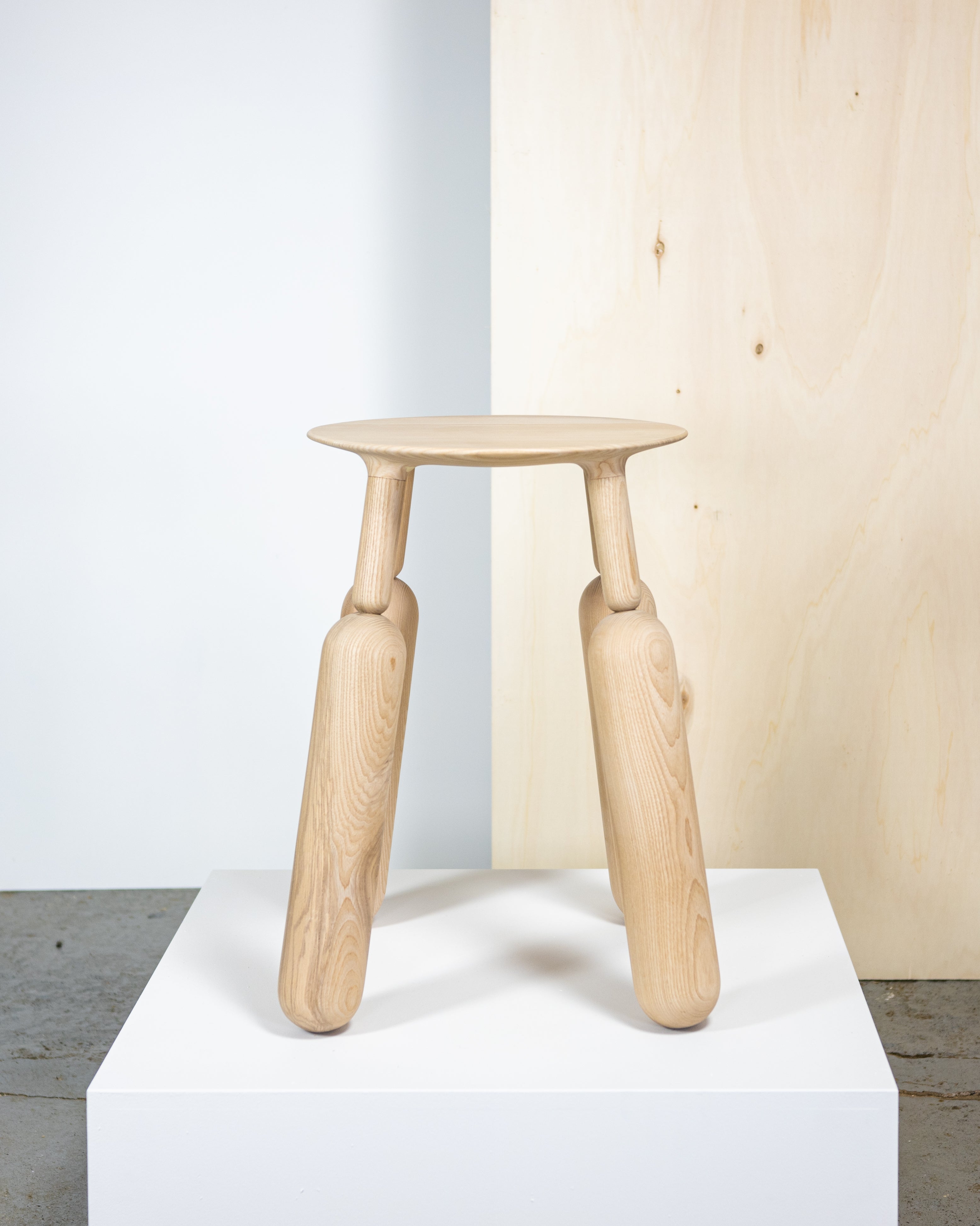 The Balloon collection brings the playful energy of balloon art to the interior, grounded in sculpturally handcrafted forms and beautiful timbers. Working as both a stool and side table the piece is flexible in its use.