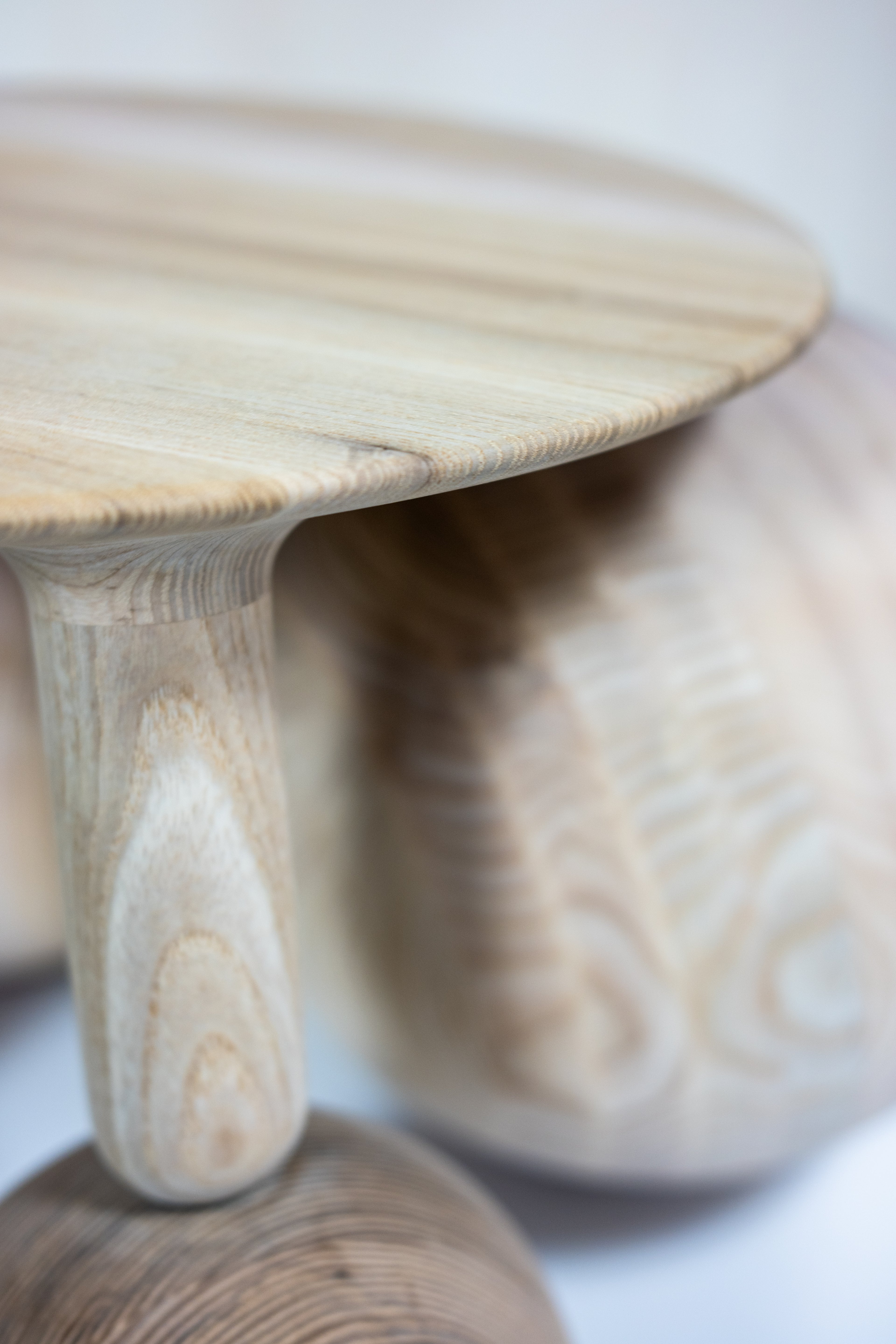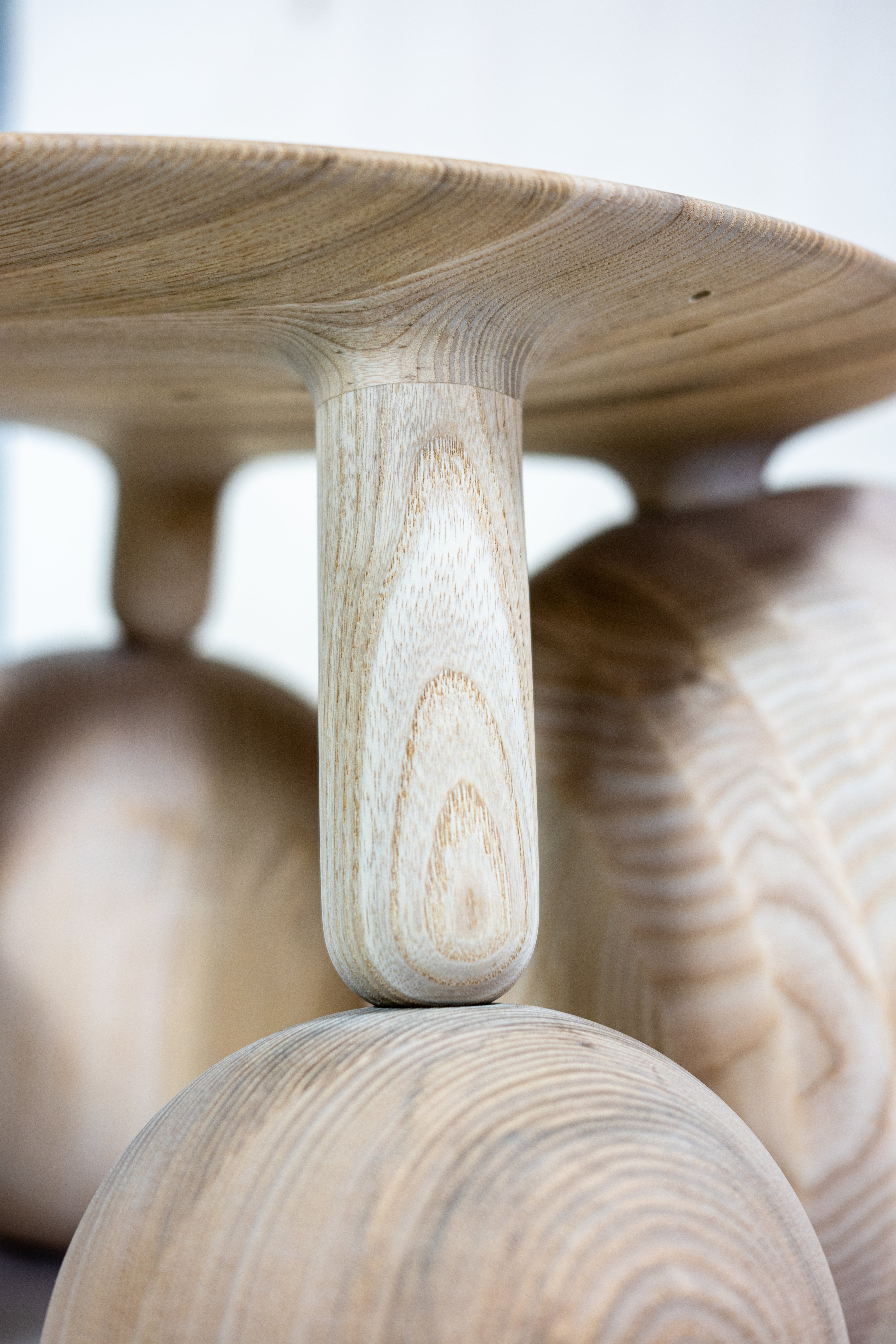 The Balloon collection brings the playful energy of balloon art to the interior, grounded in sculpturally handcrafted forms and beautiful timbers. Working as both a stool and side table the piece is flexible in its use.