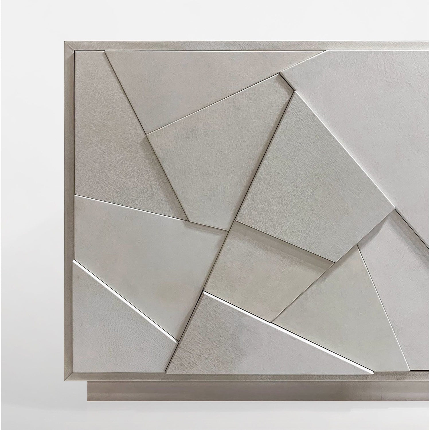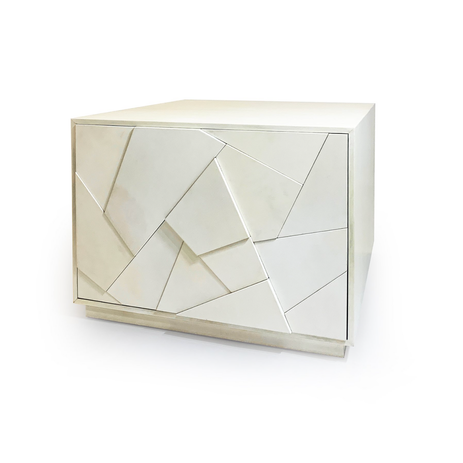 Reminiscent of fractured, geometric forms, the origami-like Cubist End Table is made from genuine goatskin parchment, masterfully crafted in the Newell Design, California Studio