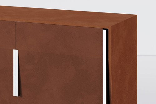 As shown - Cognac suede cladding with polished nickel legs and pulls