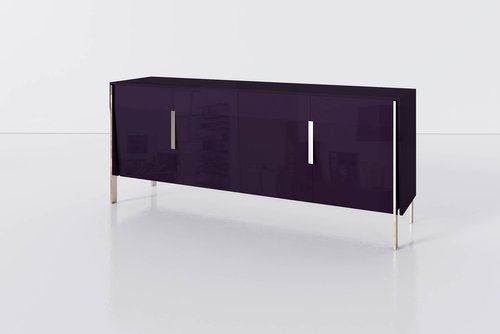 Last images shown with aubergine lacquer cladding with brass legs and pulls