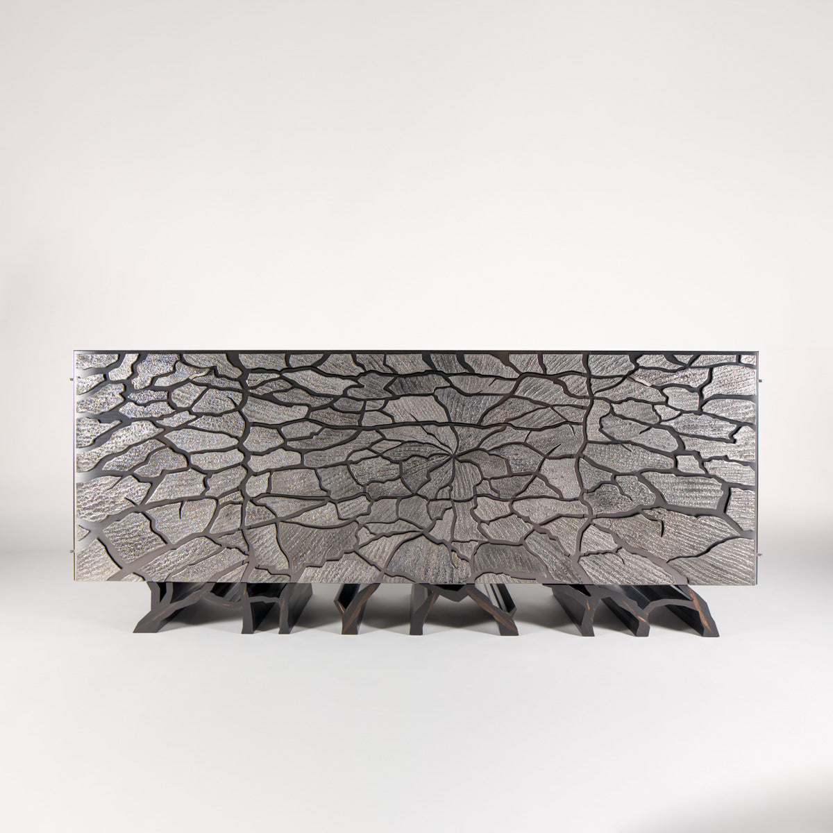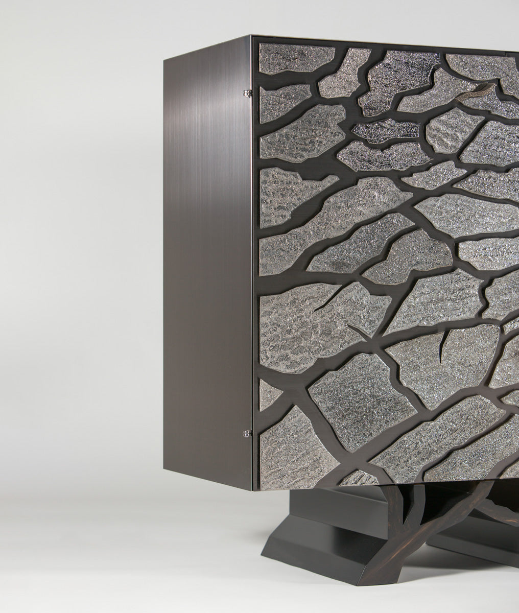 This delicate and precious decoration was staged on the furniture using the ancestral technique of enamelling on copper