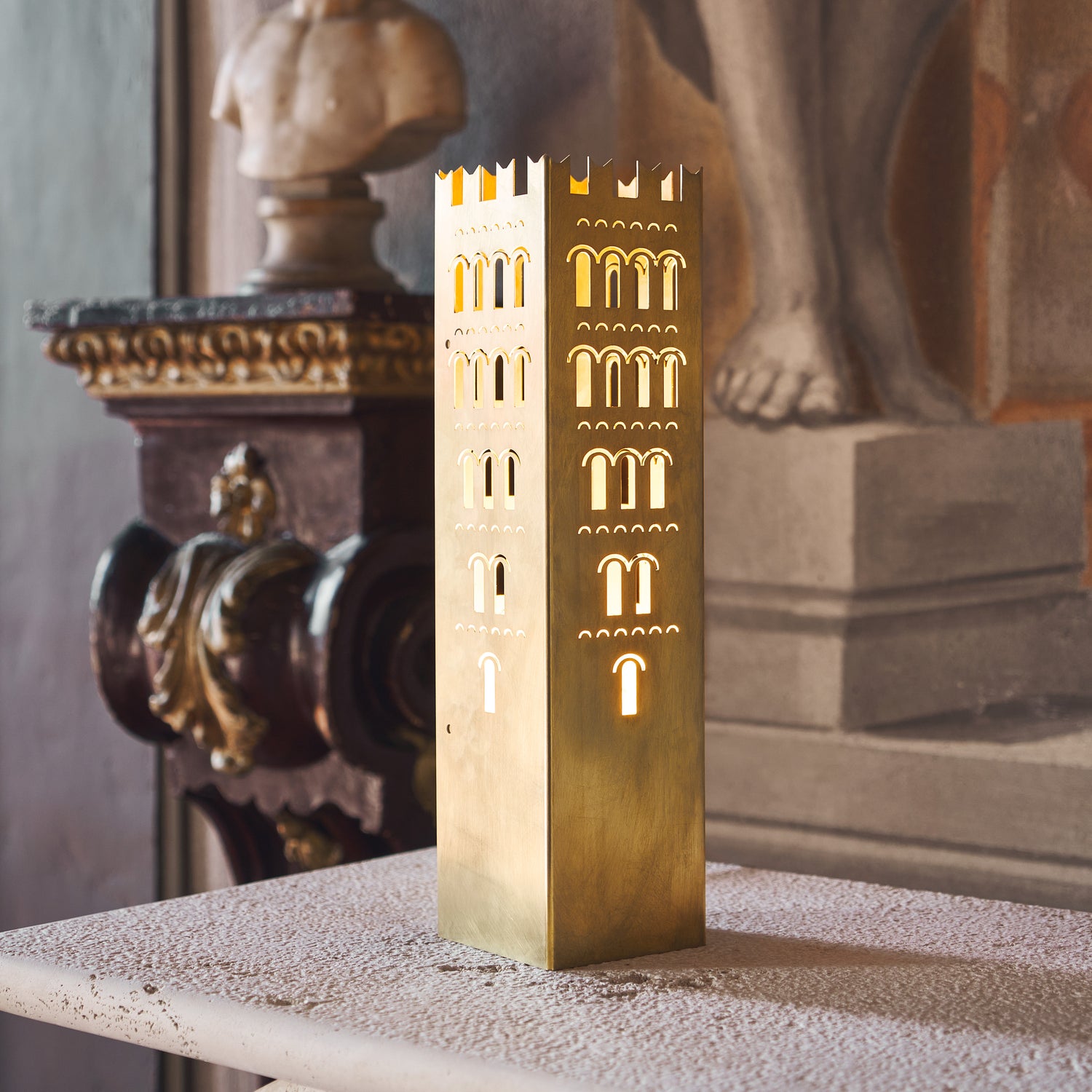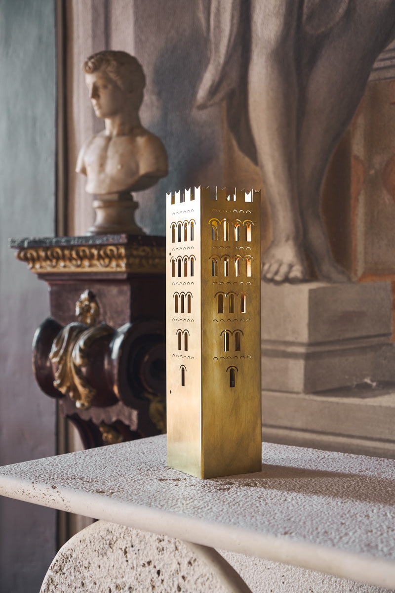 This design lamp is inspired by medieval Tuscan architecture, striking a perfect balance between contemporary design, history, and tradition.