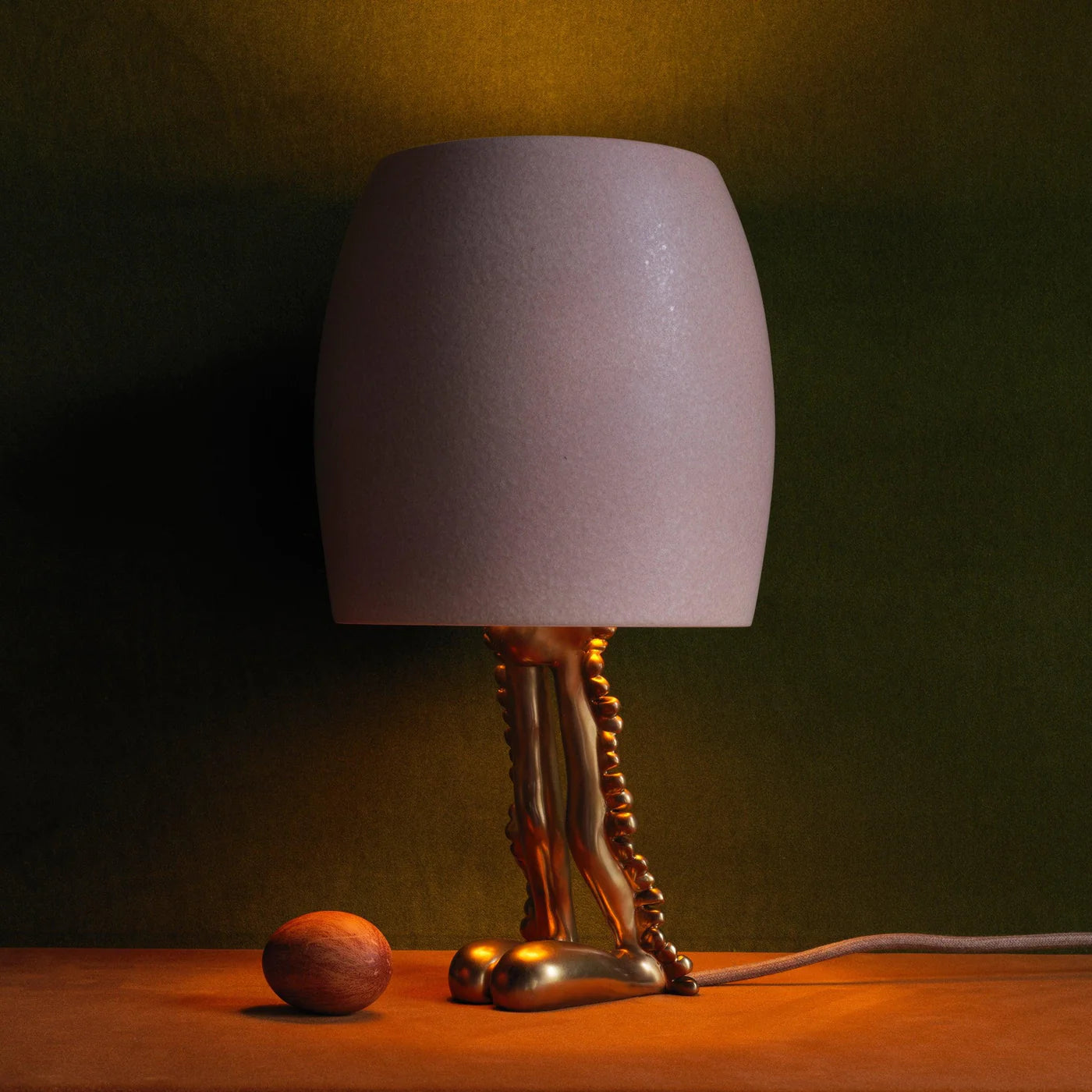 The endearing Simon Leg Table Lamp is beloved for its bashful, expressive brass legs and blushing earthenware shade