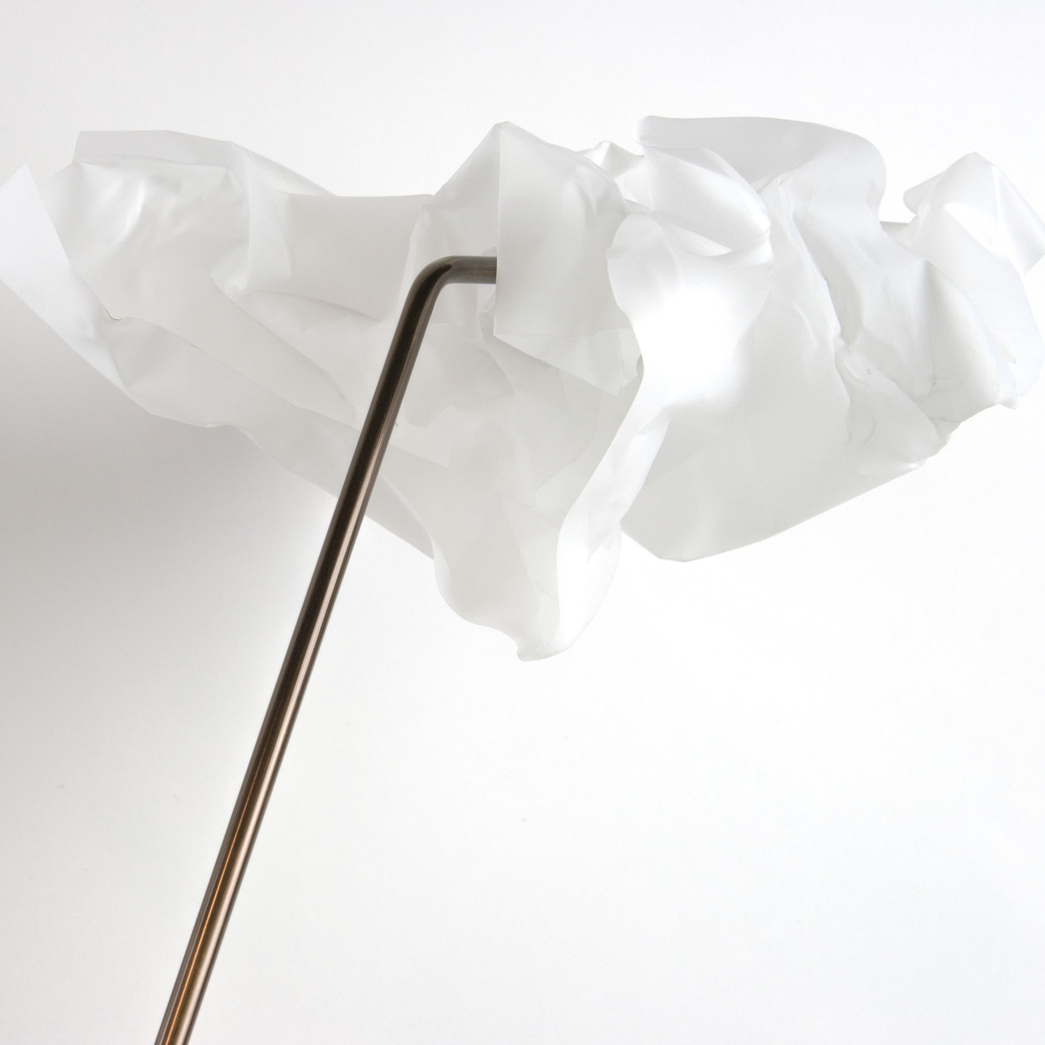 Made of brass and a special plastic, the Paper Desk Lamp is available in either darkened brass or polished tarnished brass finishes