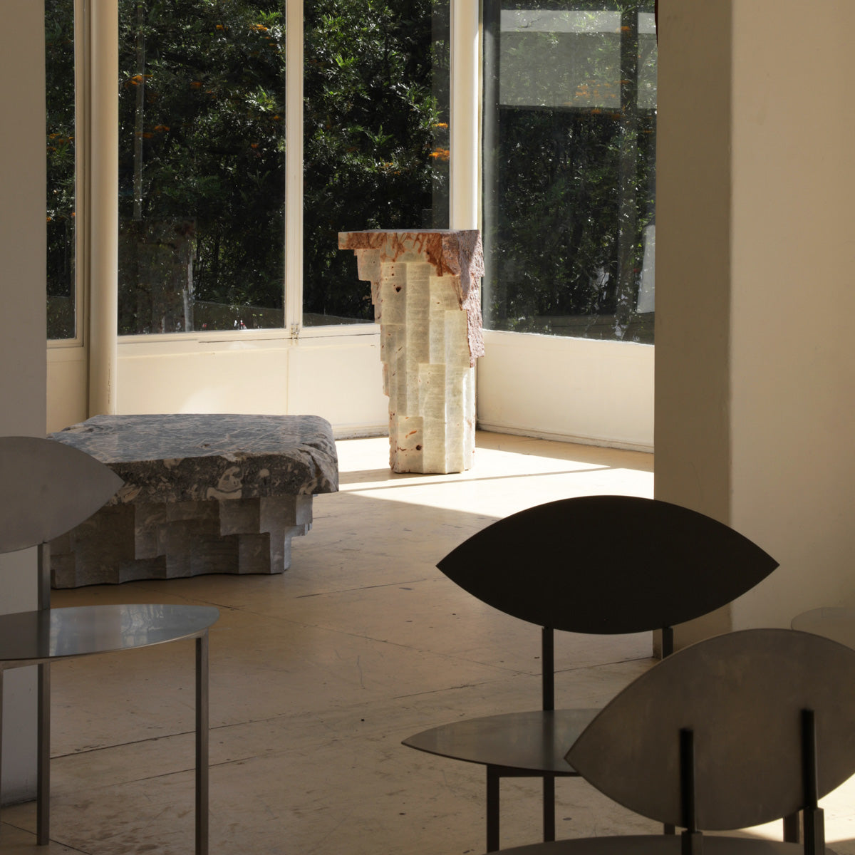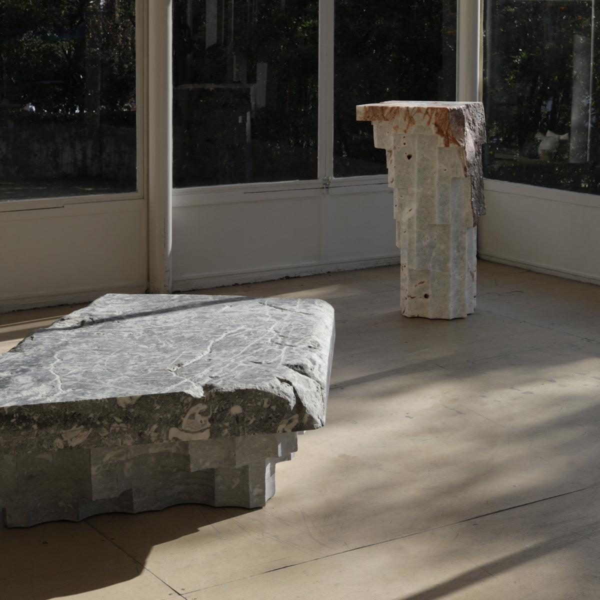 These characteristics define the final shape and dimensions of each piece, since the rough singularities of each stone are respected, turning them into a series of unique objects