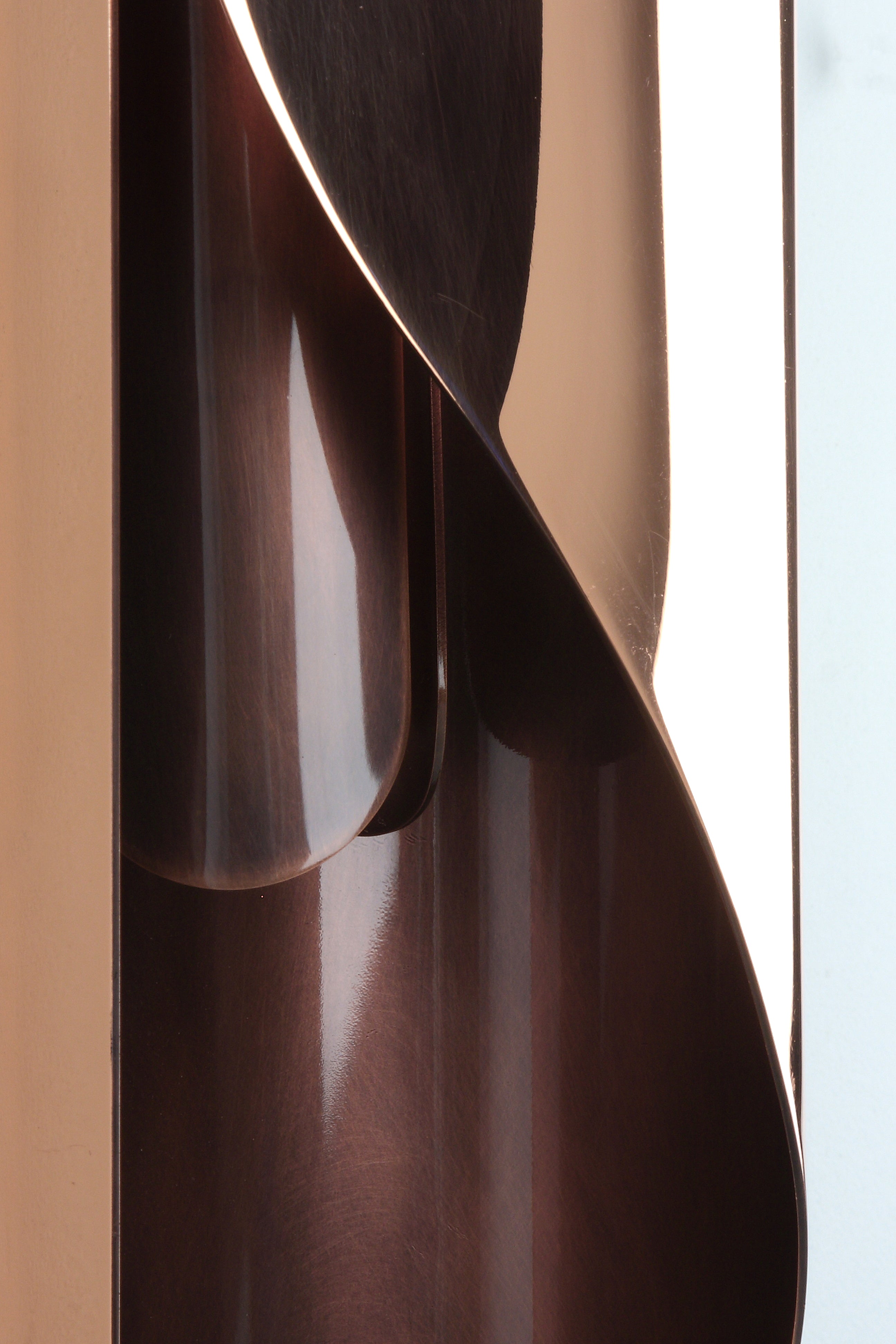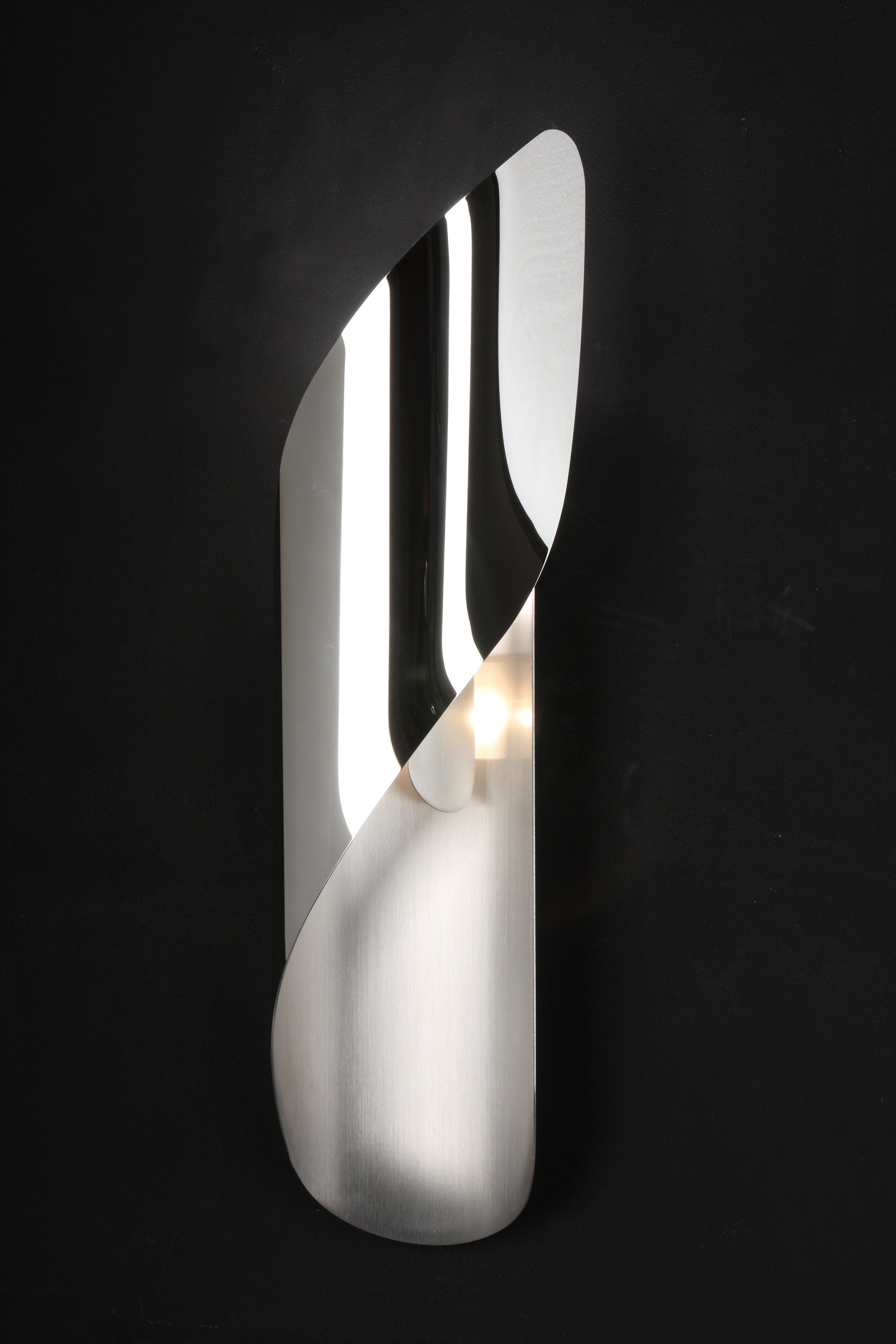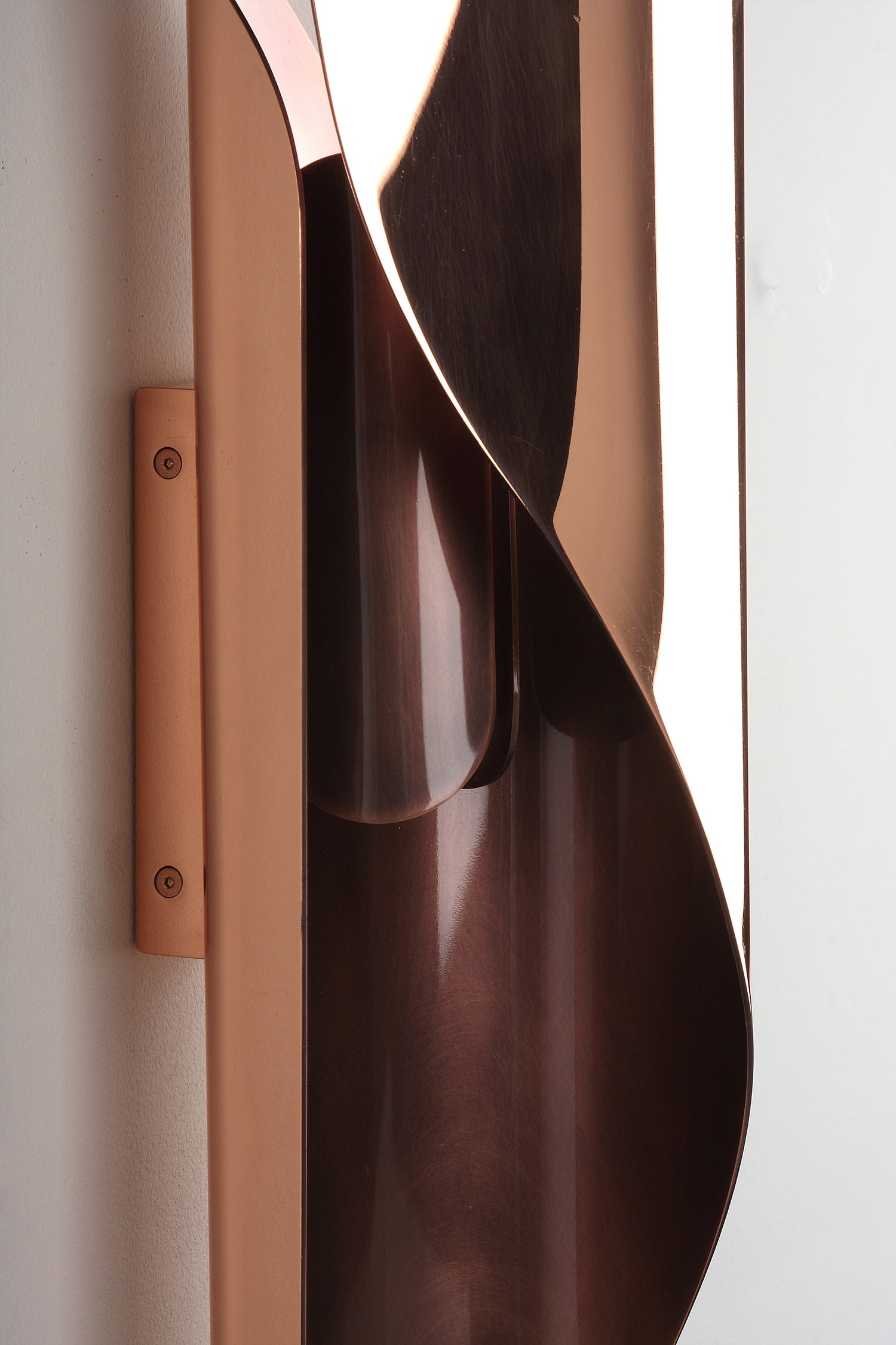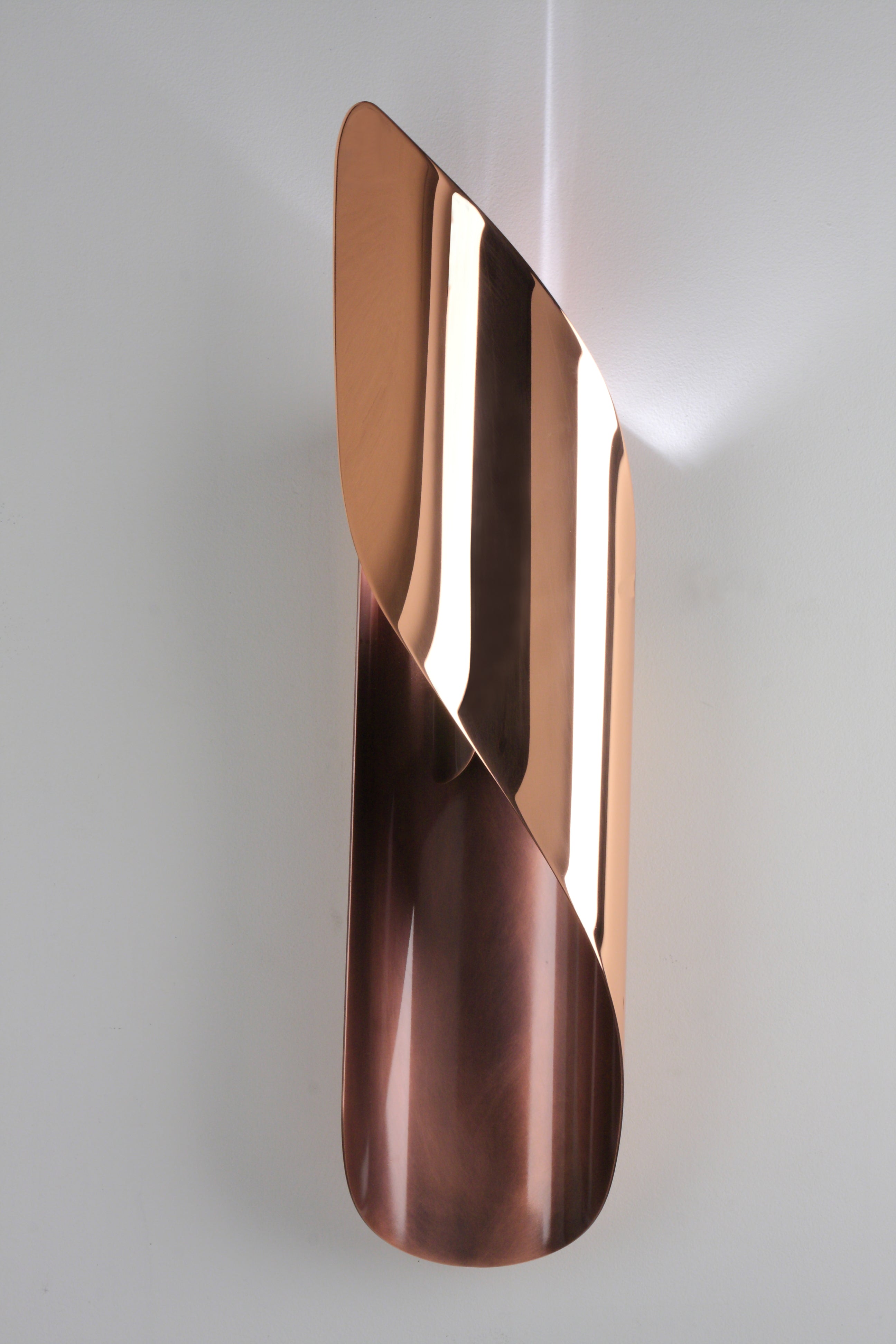 Like a flame, the Izis wall light offers a play of volume, emphasized by its variations in brilliance and curved shapes, and is available in five finishes: copper, steel, brass, polished stainless steel or white and black lacquered steel