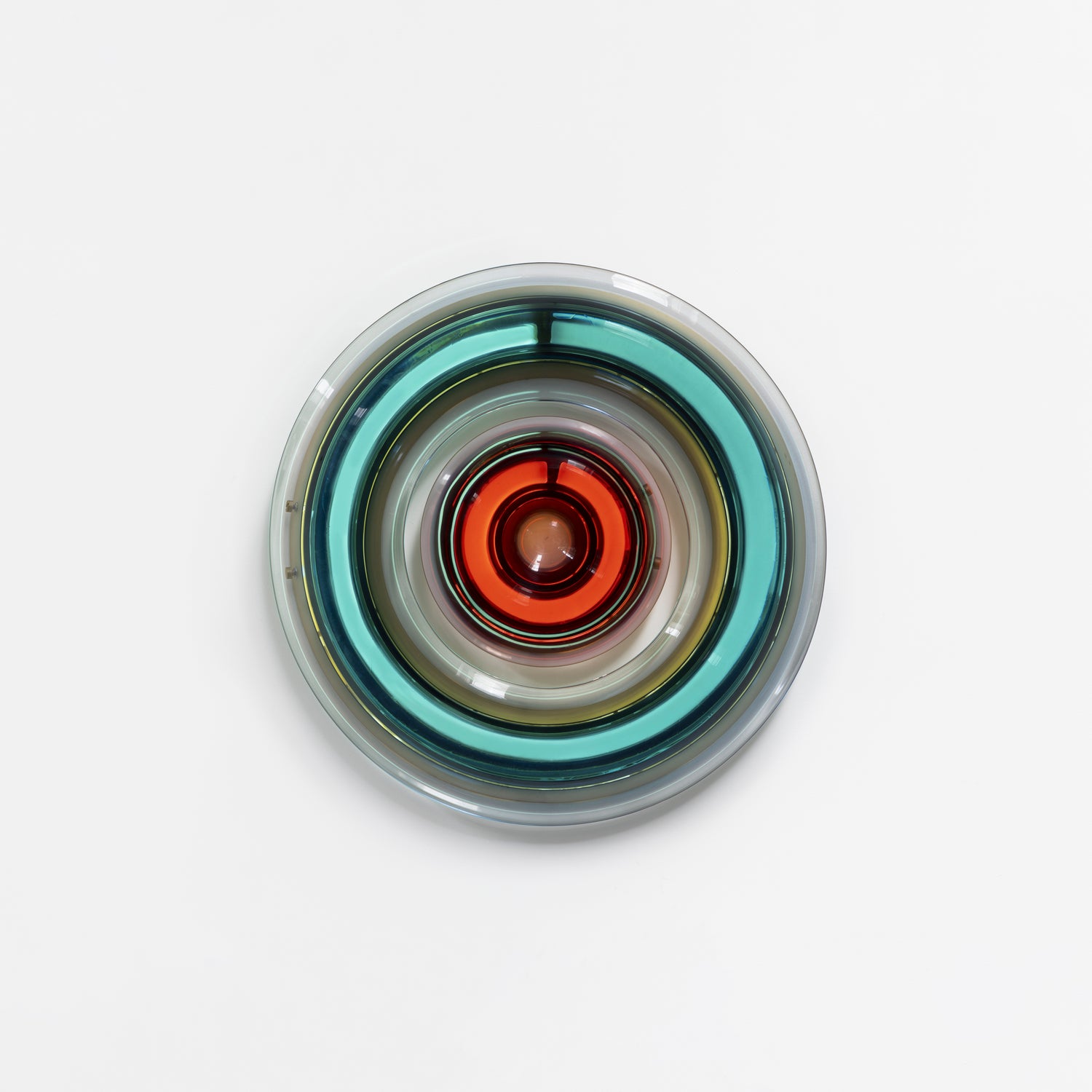 Comprising two concentric circles, the two individual lamps showcase a bright blend of colors, whose juxtaposition leads to countless combinations.