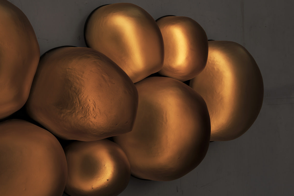 EWE Studio collaborated with Nouvel Limited to produce the special golden edition of Magma lighting sculptures for Curio/Design Miami, Basel