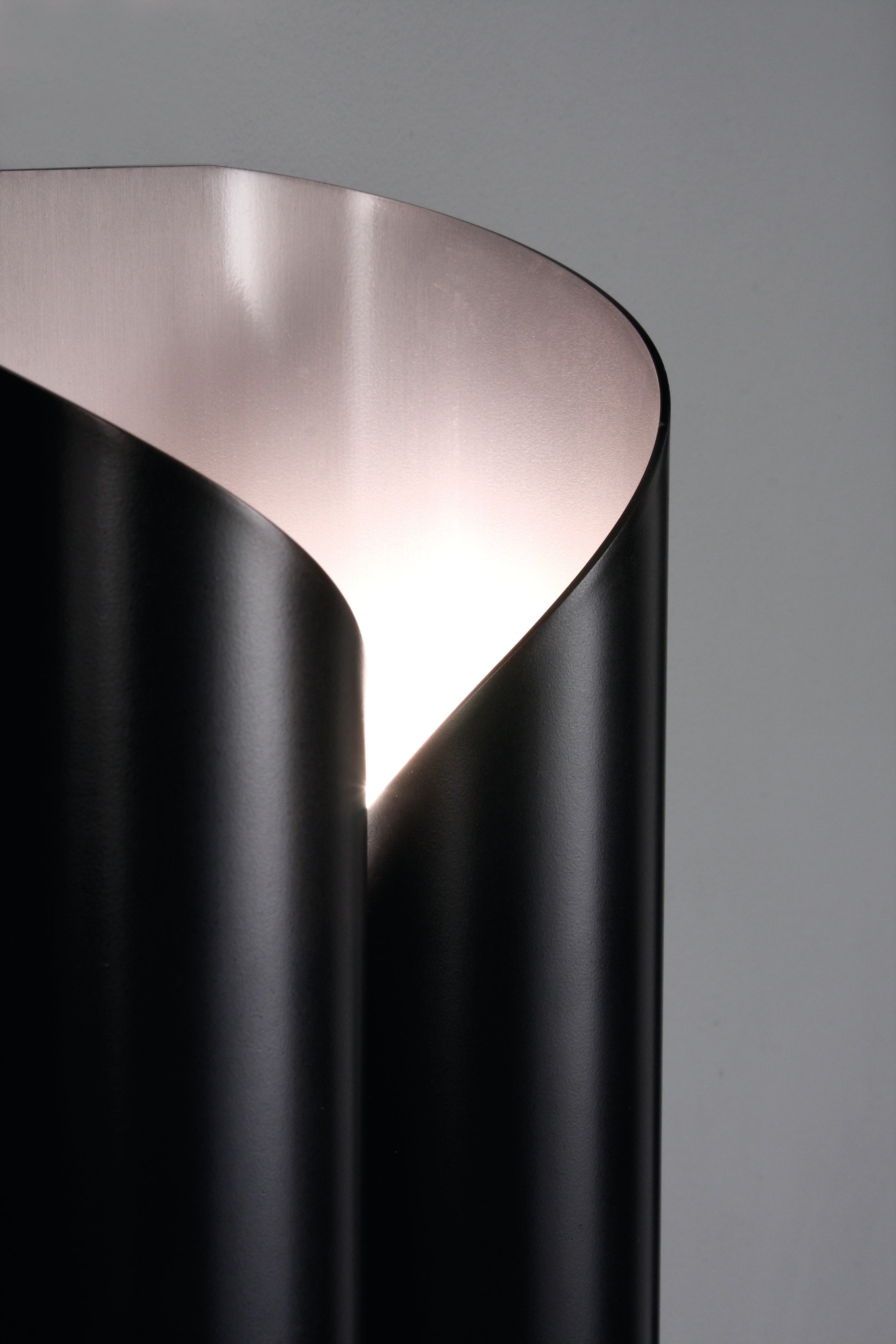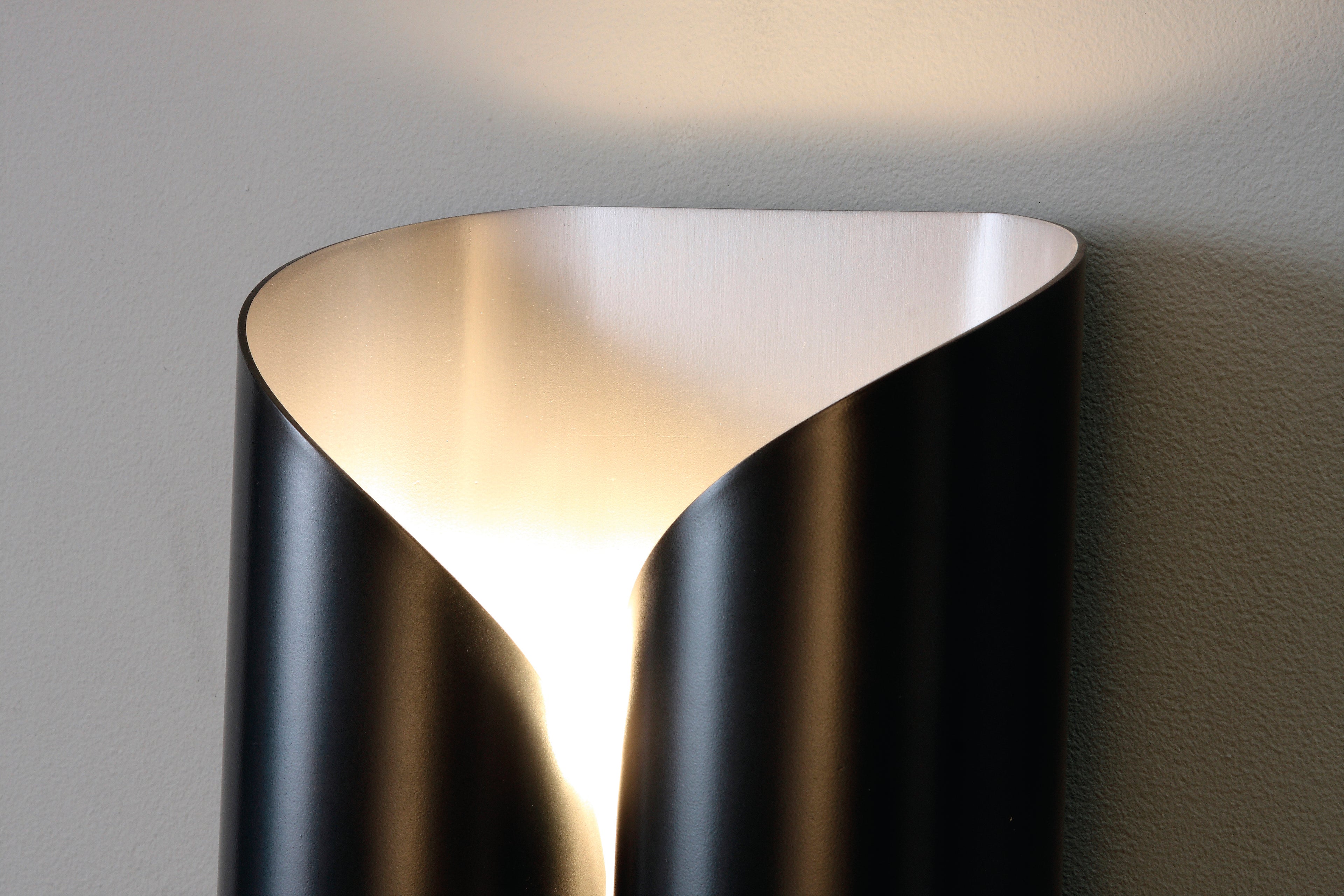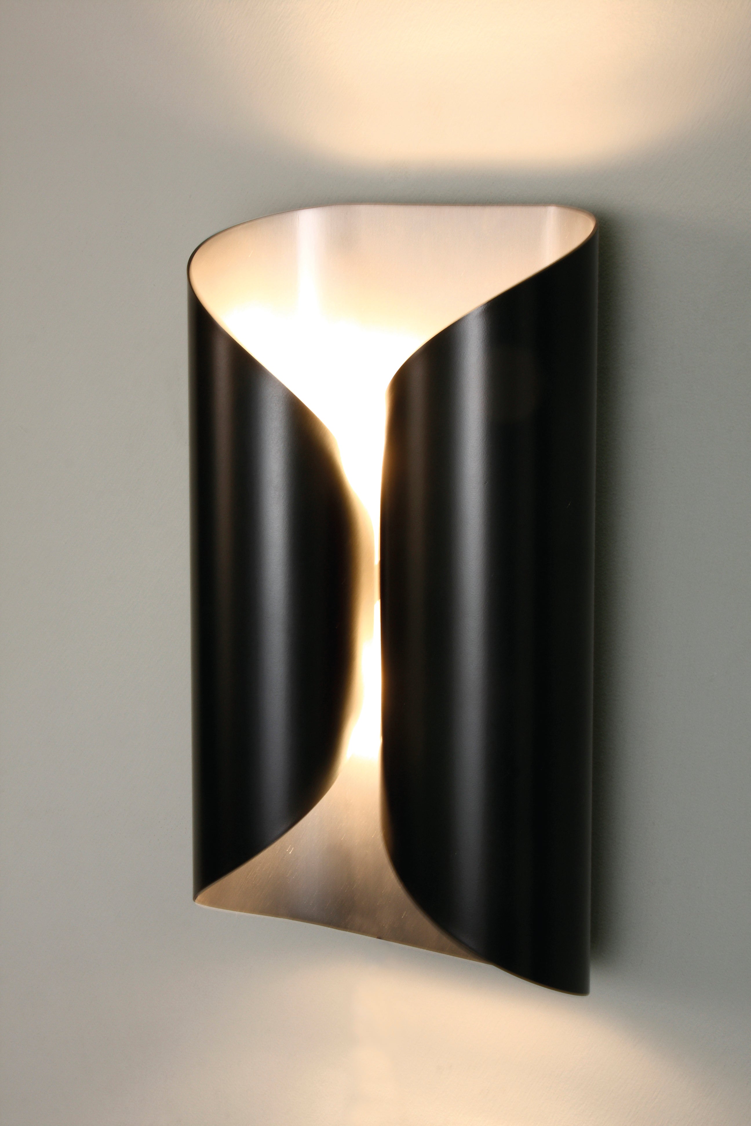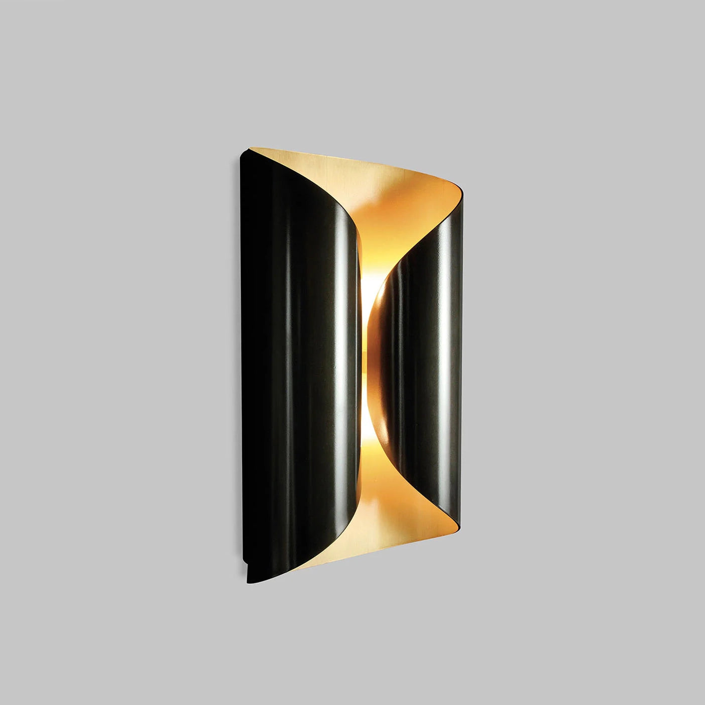The Ombre sconce rolls up like a seashell with a golden or silver inner skin
